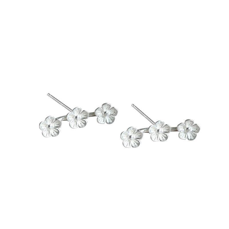 Серьги с персиковым цветком для набора персонала, женственность, простая индивидуальность, универсальные, студенческие, простые серебряные серьги Mori с тремя маленькими цветками