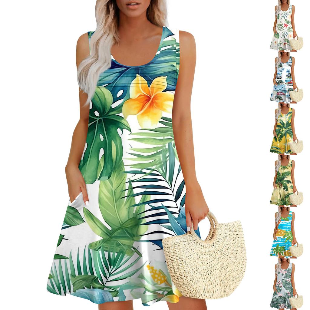 Женские летние платья, свободные сарафаны без рукавов с U-образным вырезом и карманами