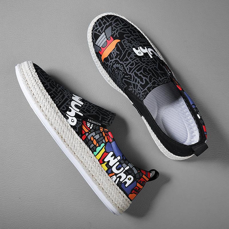 Мода 2022 Черные Летние Слипоны с Принтом Мужские Холщовые Туфли Дышащие Платформа Плоская Подошва Для Мужчин Комфортные Мужские Лоферы Повседневные — купить товар онлайн с бесплатной доставкой по всему миру!