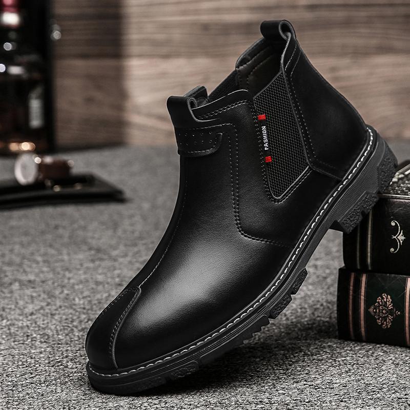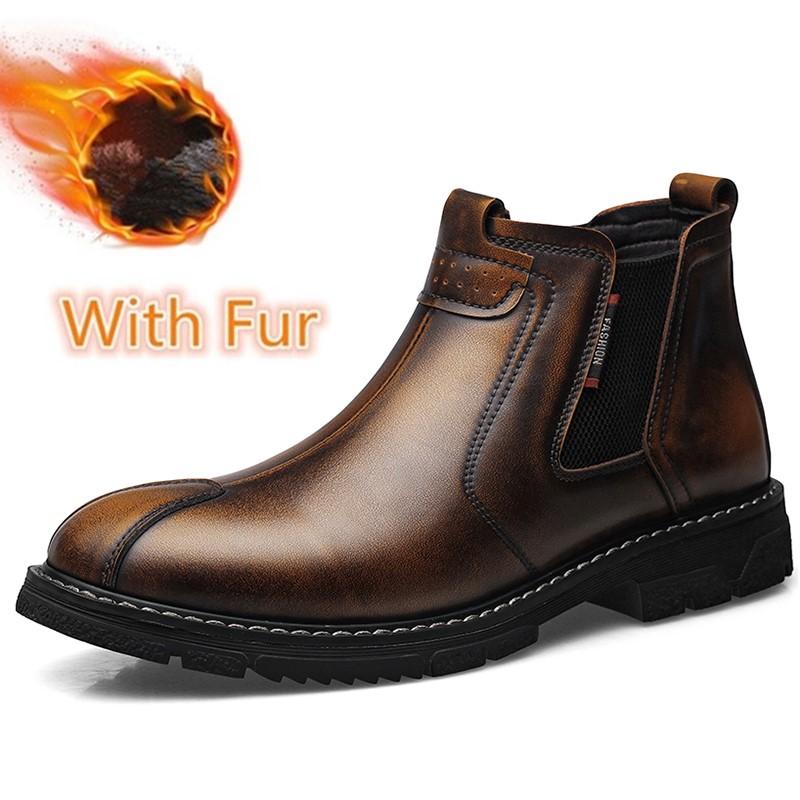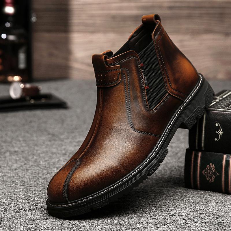 Новейшая мужская обувь, винтажные кожаные ботинки «Челси», мужские теплые зимние ботинки, мужские ботильоны без застежек, мужская повседневная обувь, мужская зимняя обувь