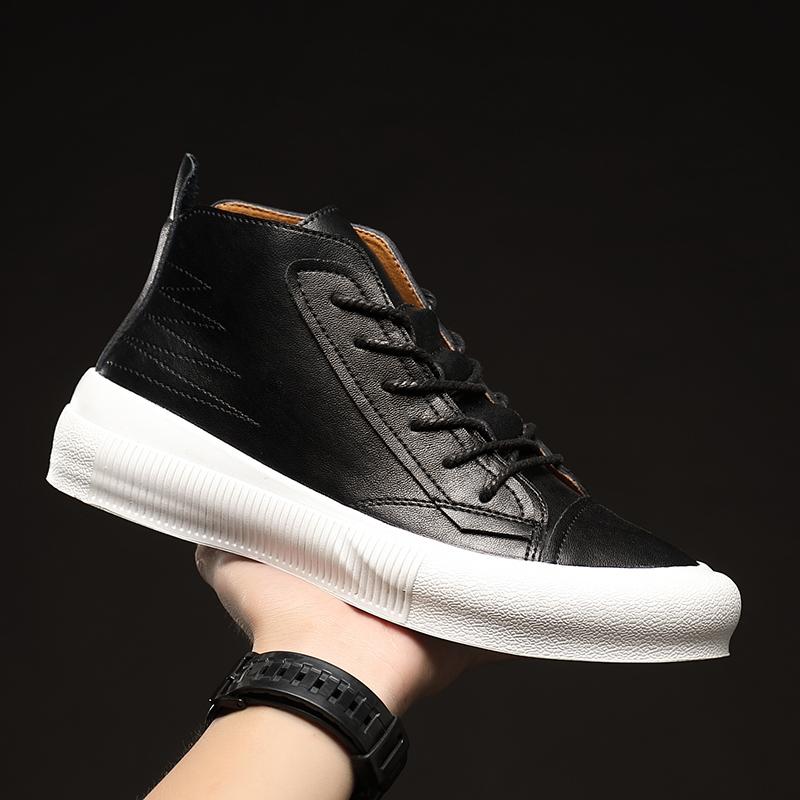 Новейшие мужские кожаные ботинки корейского стиля, удобная повседневная обувь, мужская обувь на шнуровке, модные ботильоны, высокие кроссовки для мужчин — купить товар онлайн с бесплатной доставкой по всему миру!