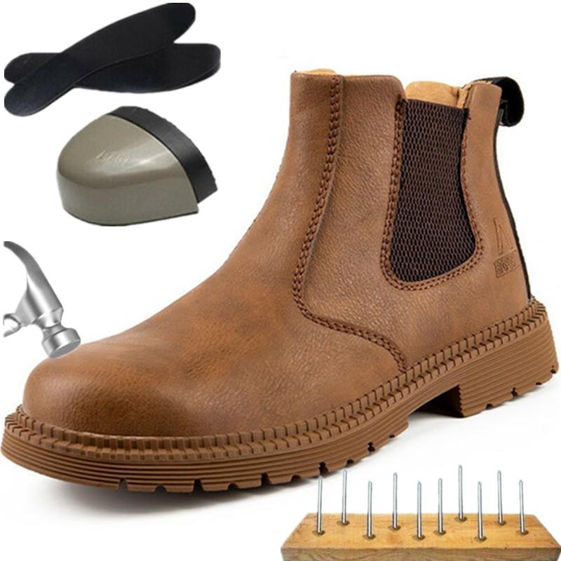 Мужские кожаные рабочие ботинки Holfredterse со стальным носком, высокие, самые популярные ботинки Chelsea, неразрушимые, водонепроницаемые, без застежек, 1688-815 — купить товар онлайн с бесплатной доставкой по всему миру!