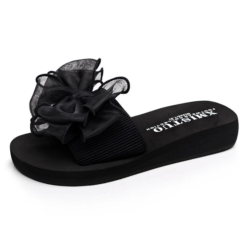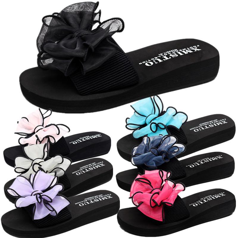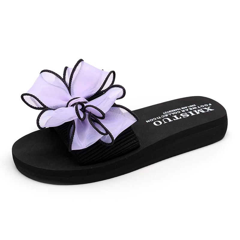 Обувь Holfredterse для женщин, сандалии 2022, женские летние тапочки, плоские домашние туфли на танкетке, большие размеры 40 41 42, бант 7109W