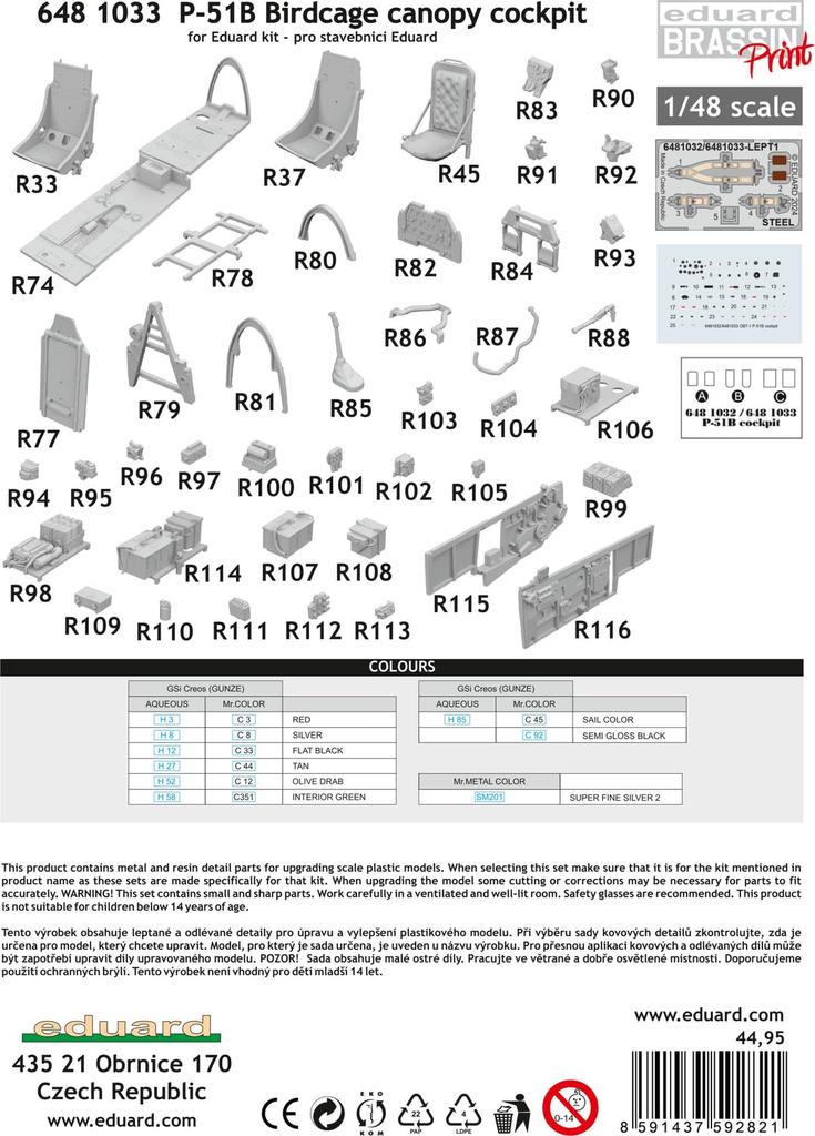 eduard Brassin Североамериканский Мустанг Нормальный Фонарь Оборудованная Кабина Пластиковые Детали Модели EDU6481033 1/48 P-51B (Для Эдуарда)