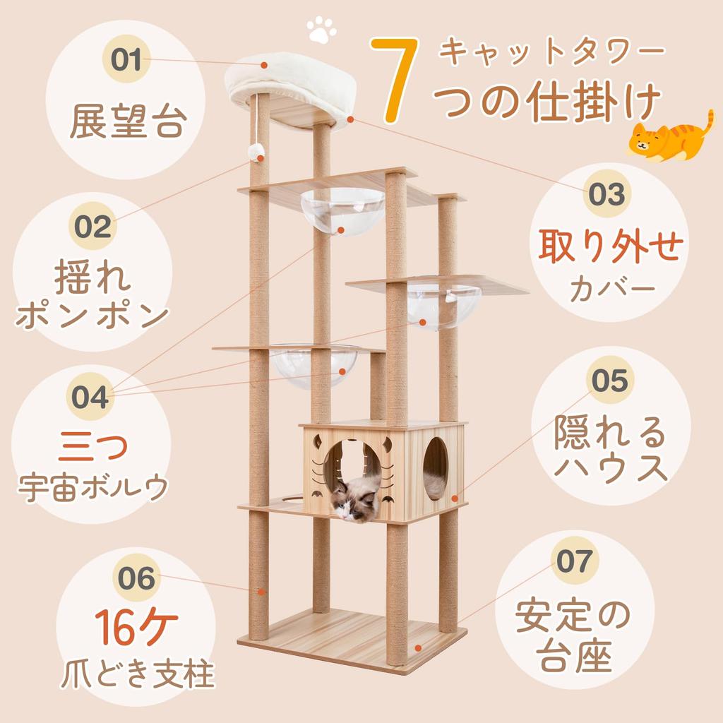 PETTOM Кошачий 187 см Три для нескольких крупных кошек Башня, Деревянный, Отдельно стоящий, высокий, Космические корабли,