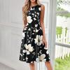 Женское повседневное модное платье миди с цветочным принтом и круглым вырезом без рукавов