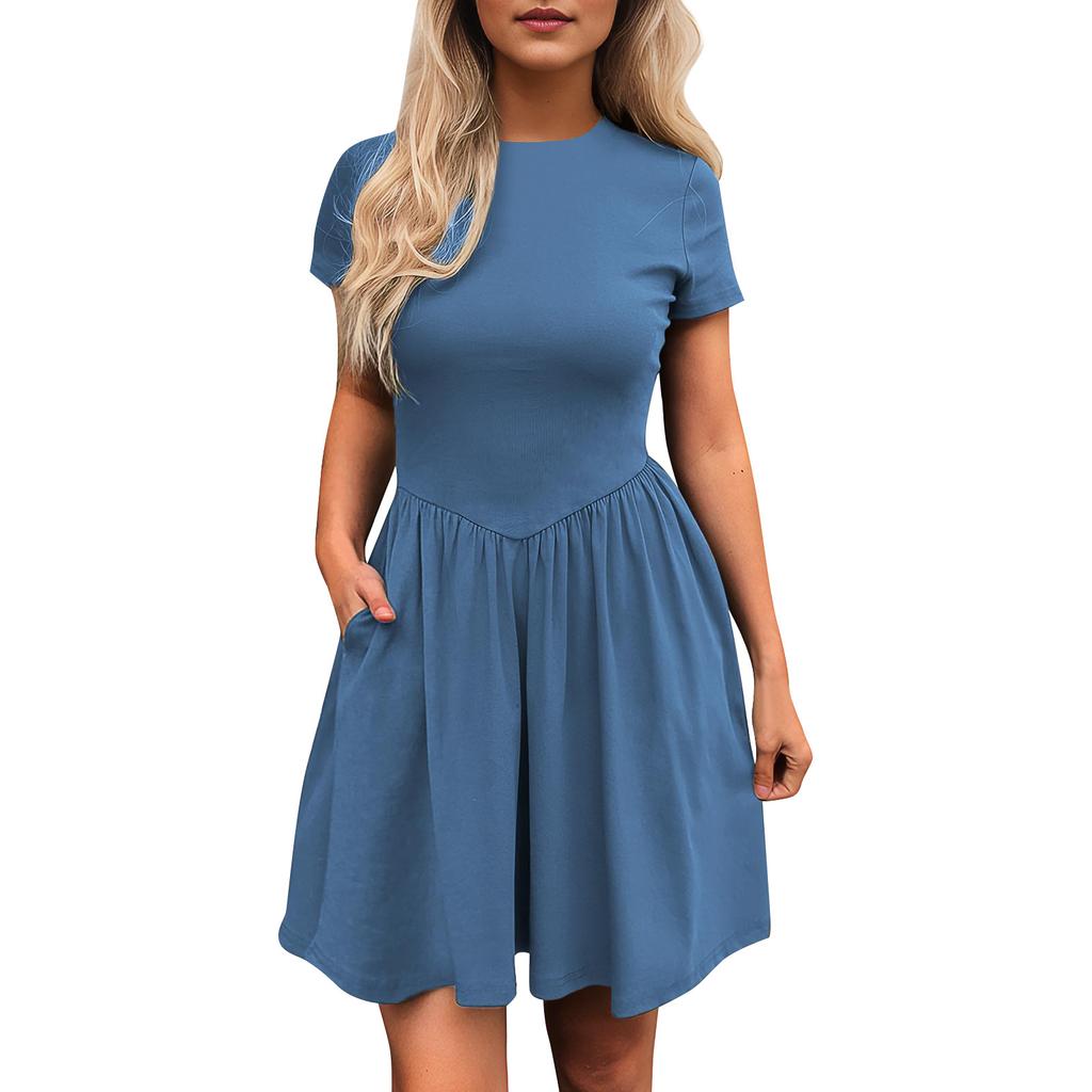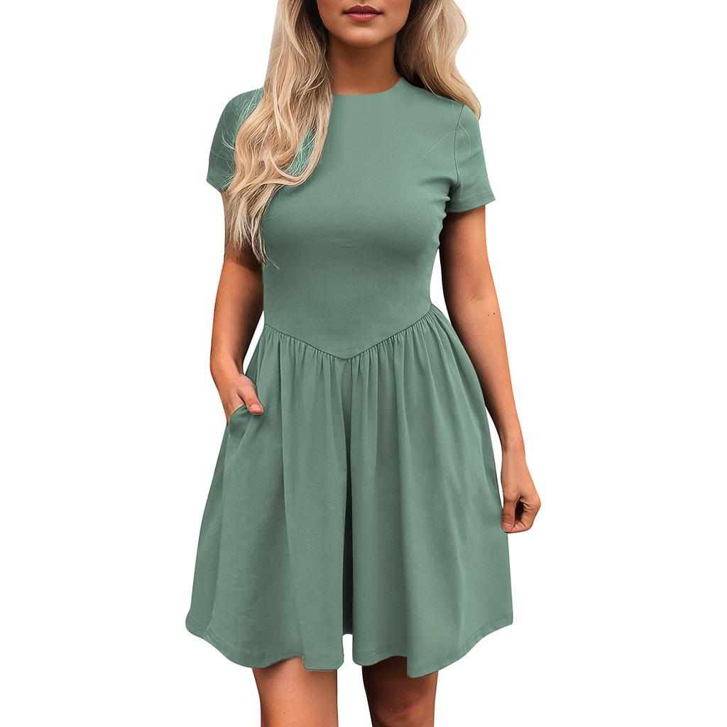 Повседневные платья для женщин с воротником-лацканом, V-образным вырезом и рукавами средней длины, плиссированные летние платья для женщин