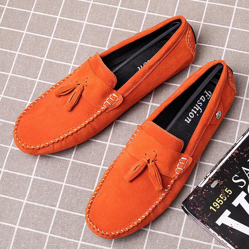 Летняя мода оранжевые туфли-лоферы мужские повседневные удобные замшевые кожаные туфли мужские низкие туфли для вождения мужские туфли на плоской подошве размер 38-46