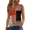Женская повседневная свободная плиссированная рубашка с цветами и растениями, футболка с V-образным вырезом и застежкой на пуговицы, безрукавка, топ