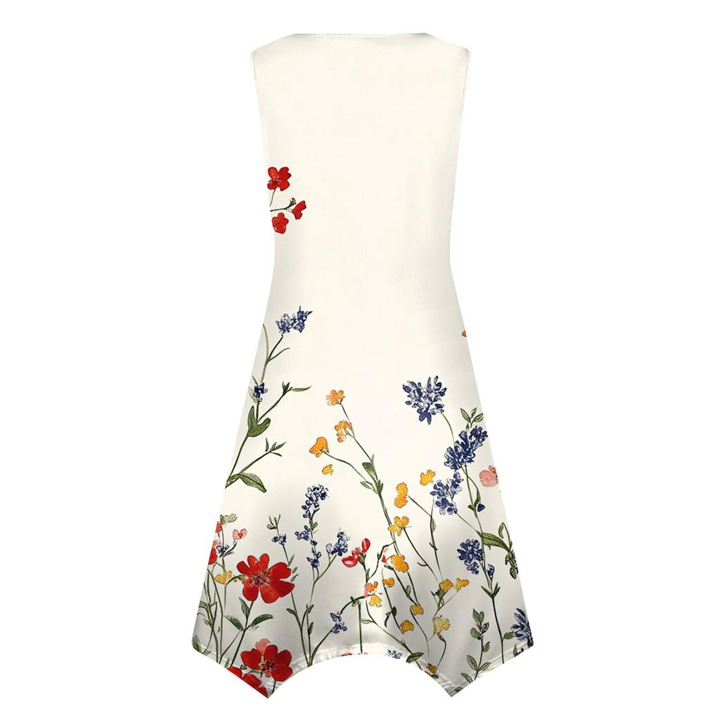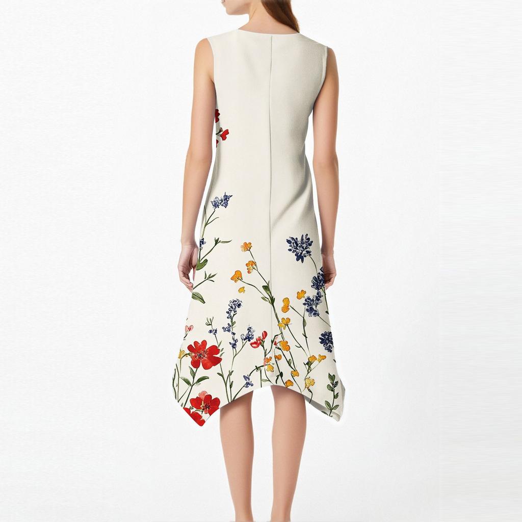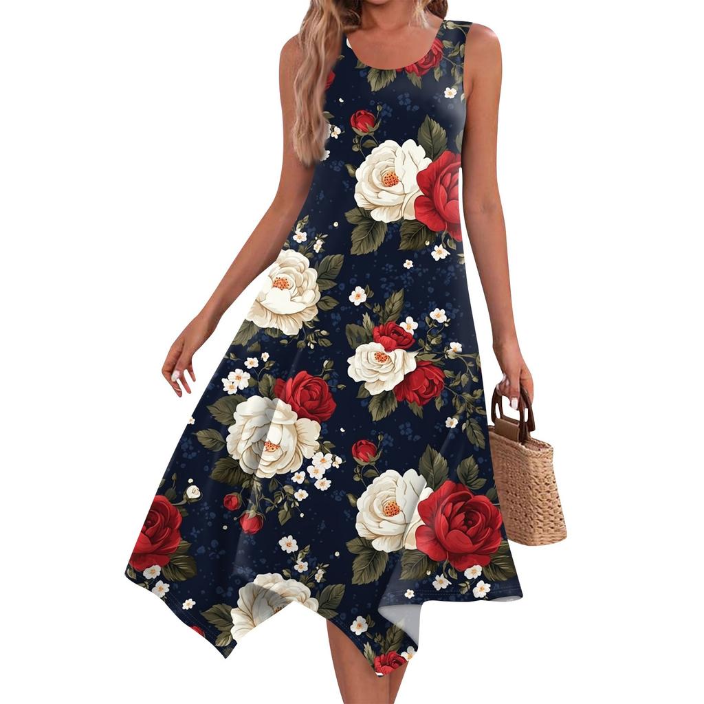 Женское повседневное модное платье миди с круглым вырезом без рукавов и принтом, неровным подолом, платье миди с подолом