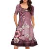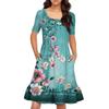 Женское повседневное платье с круглым вырезом и короткими рукавами. Платье со свободной талией и складками. Платье с складками на талии.