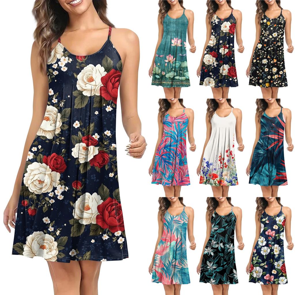 Женское модное пляжное платье без рукавов с цветочным принтом на подтяжках для отпуска — купить товар онлайн с бесплатной доставкой до всему миру!