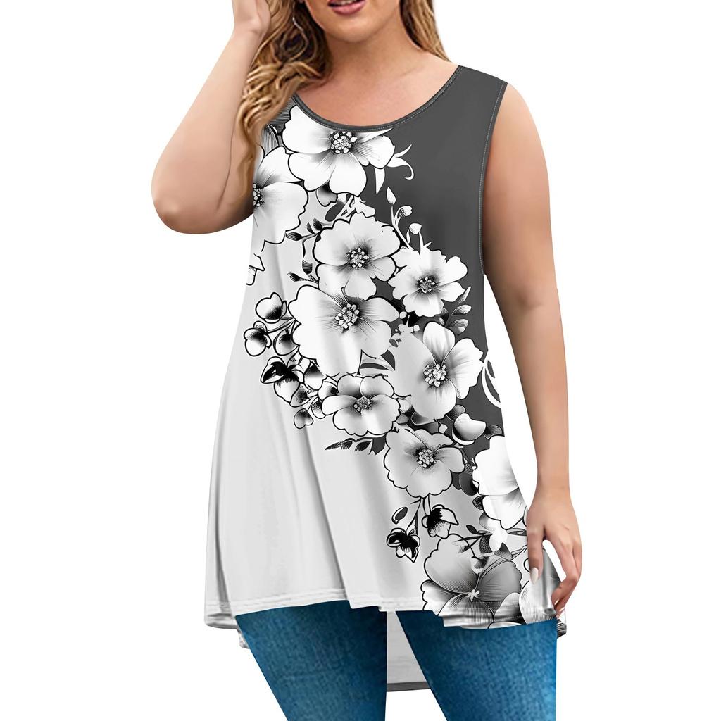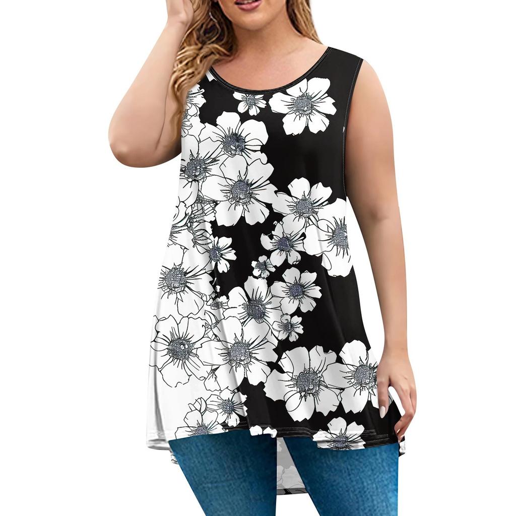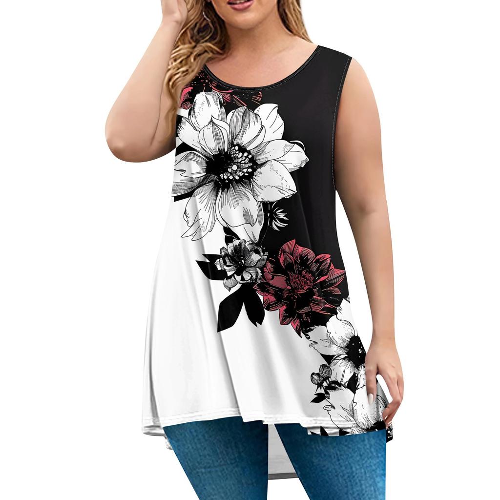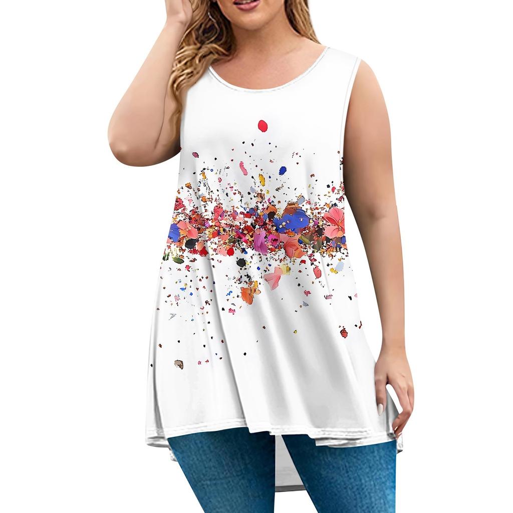 Женская мода большого размера с круглым вырезом без рукавов повседневный свободный пуловер с принтом