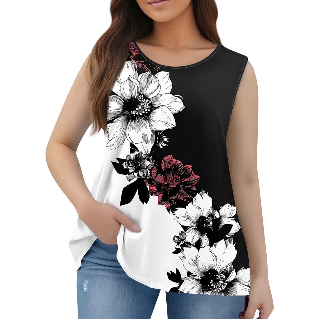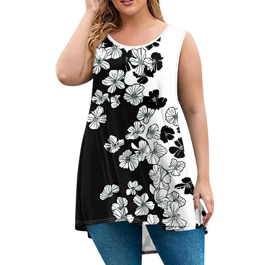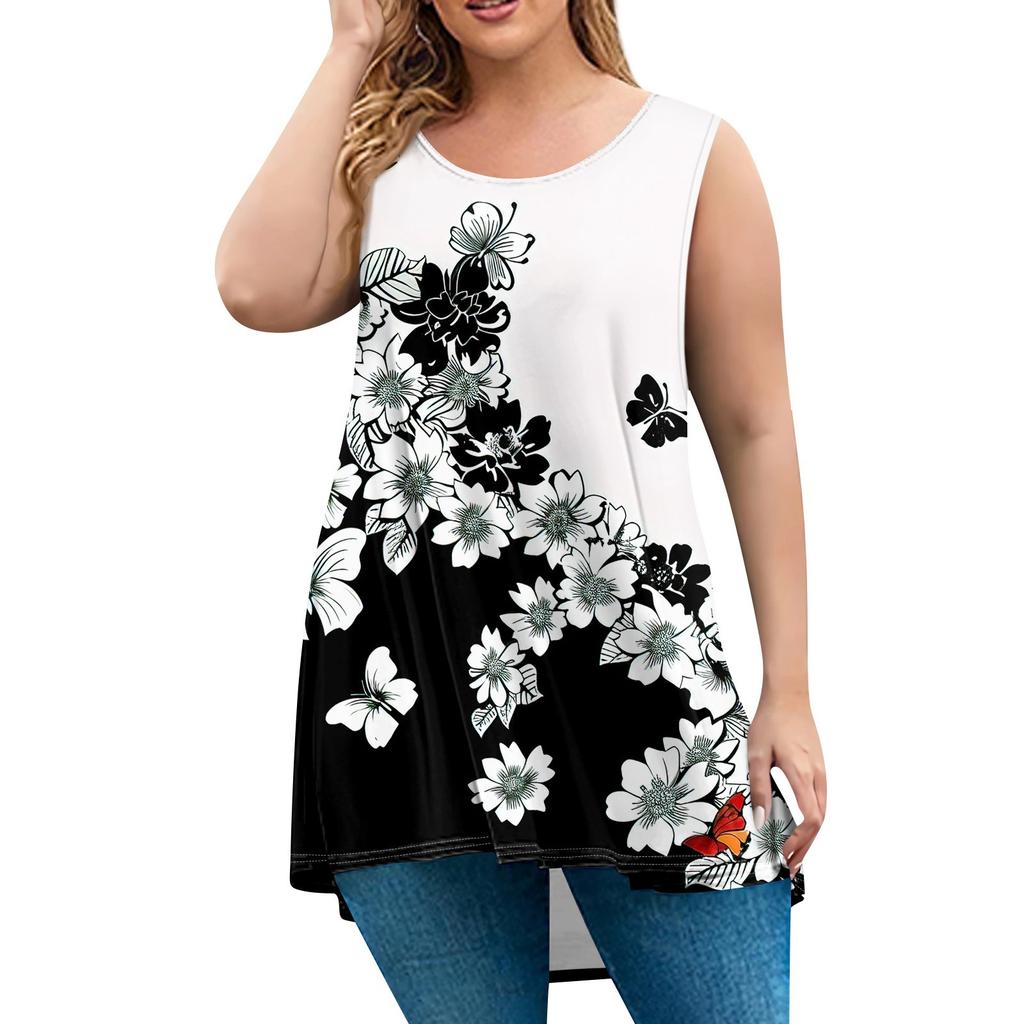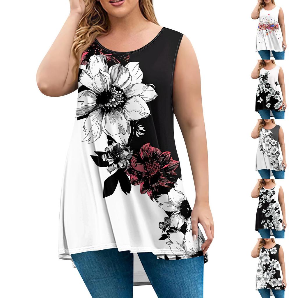 Женская мода большого размера с круглым вырезом без рукавов повседневный свободный пуловер с принтом