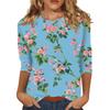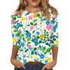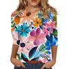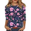 Женский топ с цветочным принтом, круглым вырезом и рукавами три четверти Футболка Футболка с рукавами три четверти