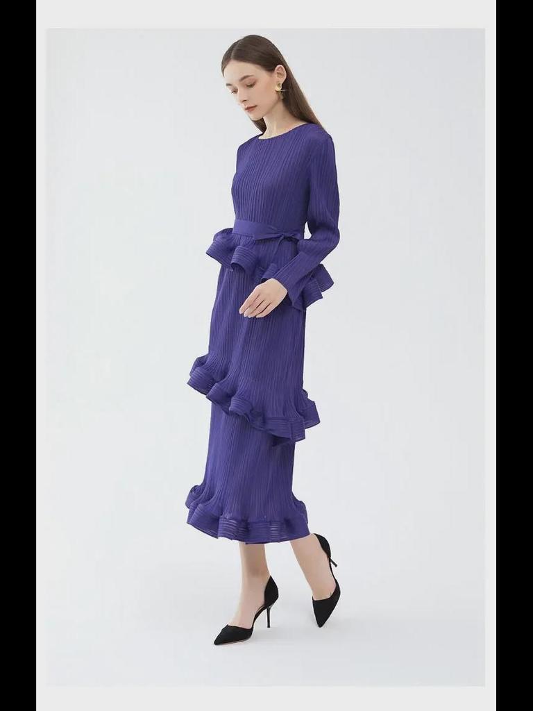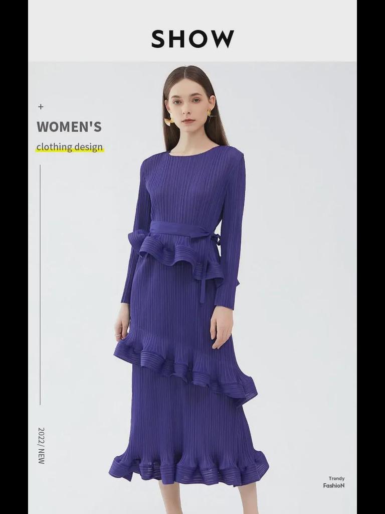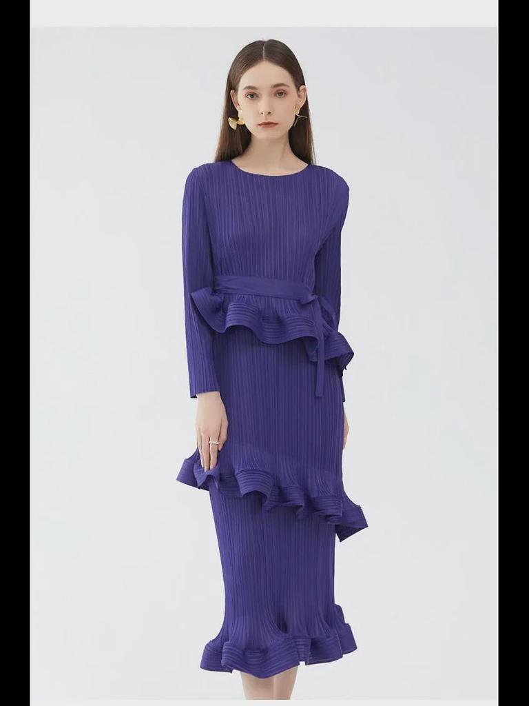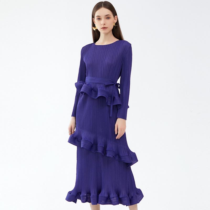 Женское платье Miyake Весна 2025 года с длинными рукавами, оборками, шнуровкой, средней длины, облегающего кроя, плиссированная юбка снизу.