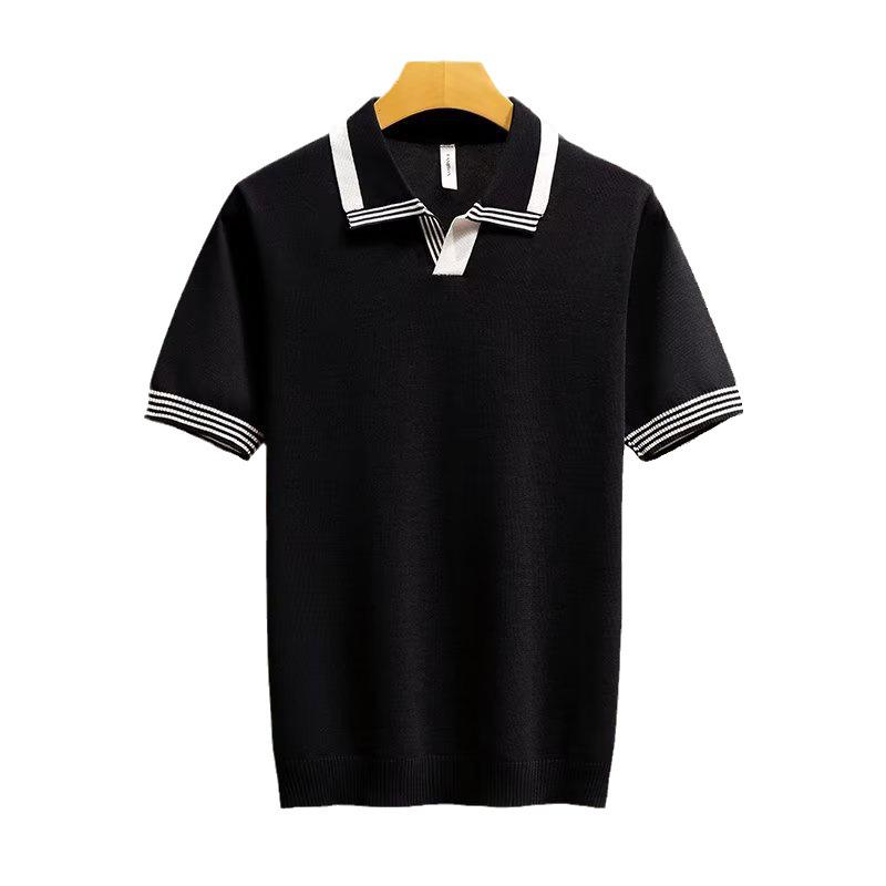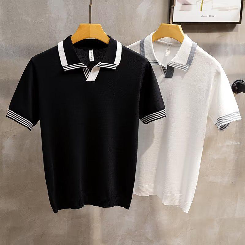 Мужская легкая трикотажная рубашка-поло в стиле ретро - летние лацканы, короткие рукава