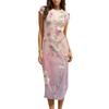 Женские платья миди с коротким рукавом и воротником-хомут, весна-лето, вечернее платье