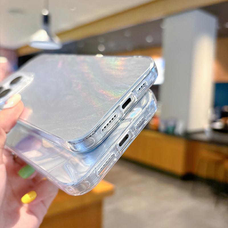 Чехол для телефона iPhone 16 15 13 14 Pro Max 11 12 7 8 Plus X XR XS Max SE 2020 2022 Роскошный лазерный серебристый градиентный силиконовый чехол