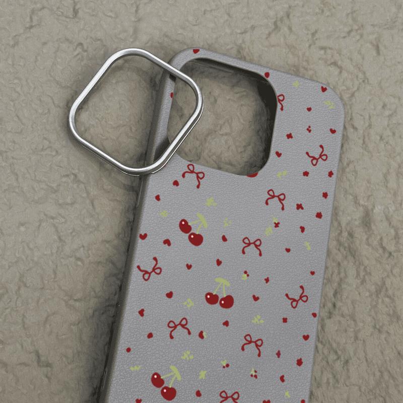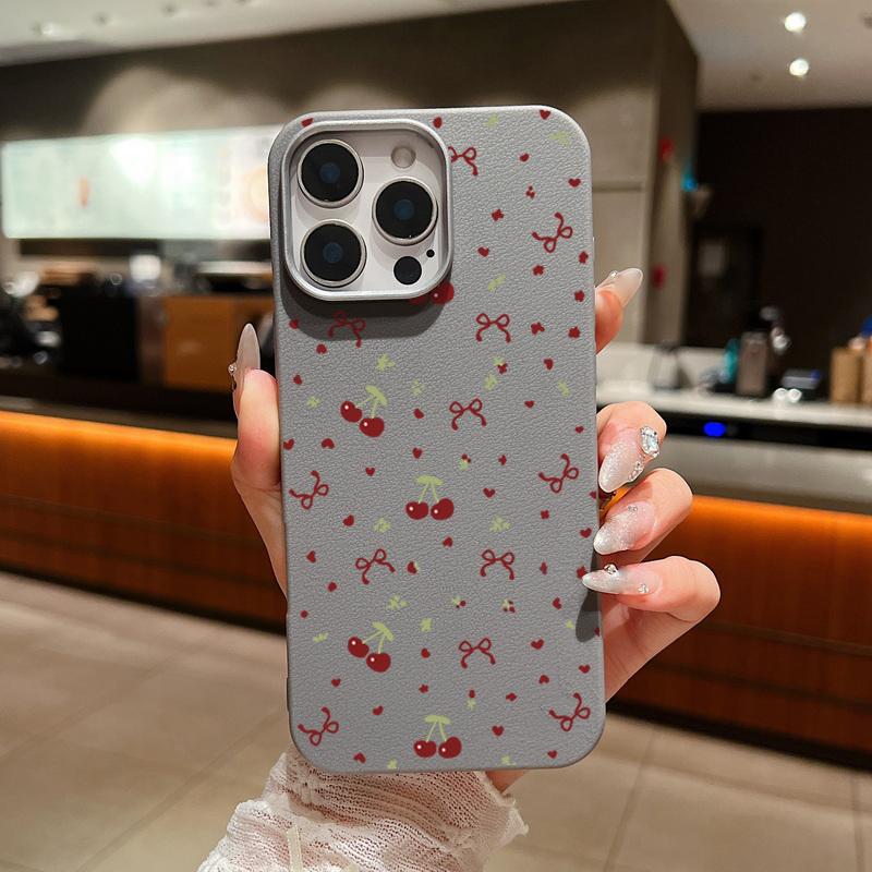 Мягкий чехол с милым бантом и рисунком вишни для iPhone 14 Plus 16 15 Pro Max 13 12 Pro 11, противоударный чехол из кожи и текстуры силикона