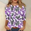 Женская модная повседневная футболка с круглым вырезом и рукавом 3/4, женский топ