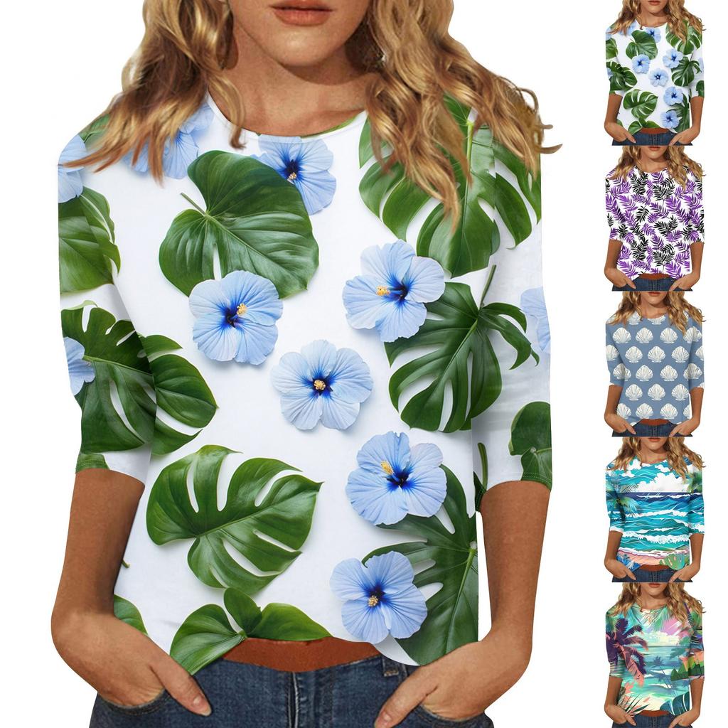 Женская модная повседневная футболка с круглым вырезом и рукавом 3/4, женский топ — купить товар онлайн с бесплатной доставкой до всему миру!