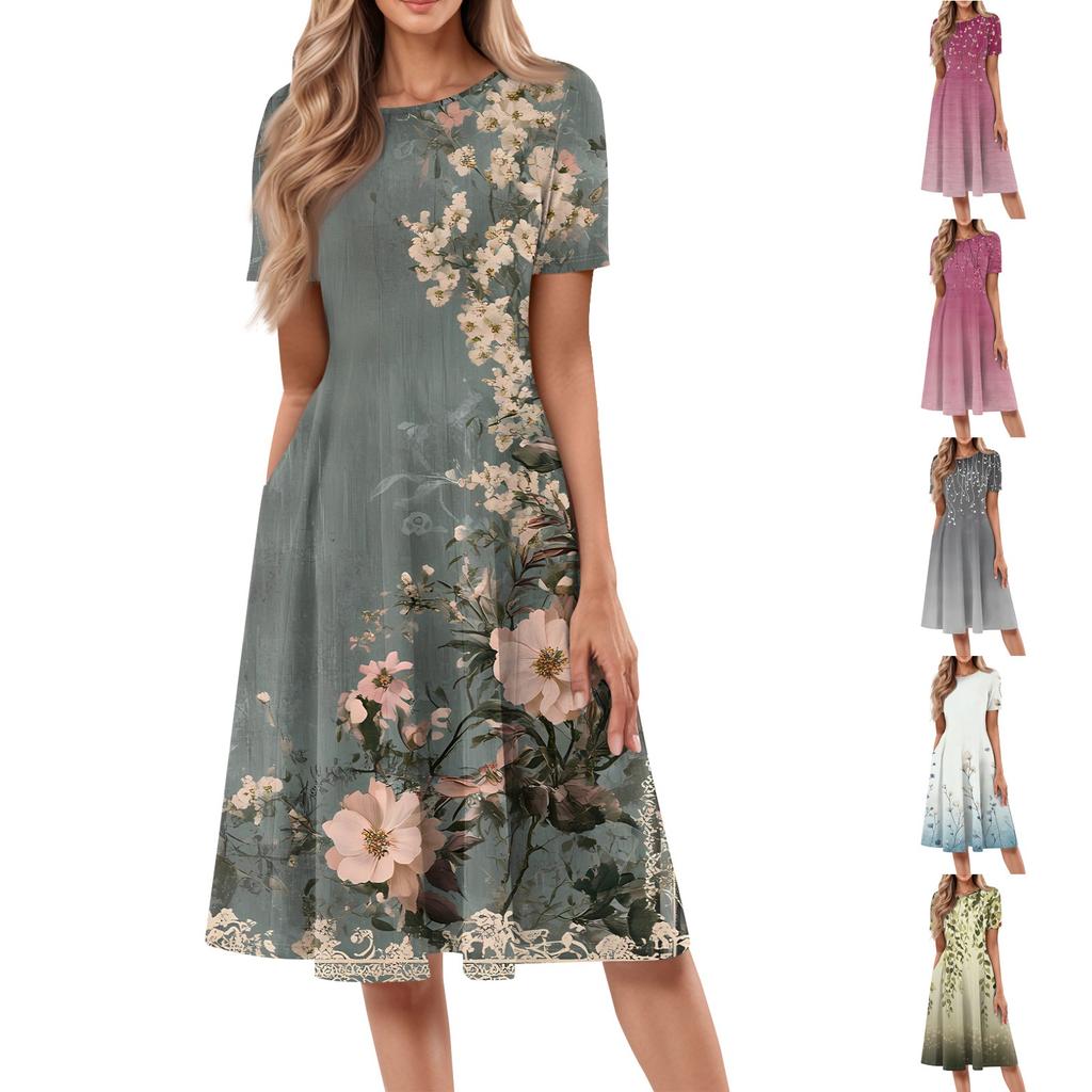 Женское повседневное модное платье миди с круглым вырезом и коротким рукавом с принтом — купить товар онлайн с бесплатной доставкой до всему миру!