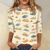 Женская модная повседневная футболка с круглым вырезом и рукавом 3/4, женский топ