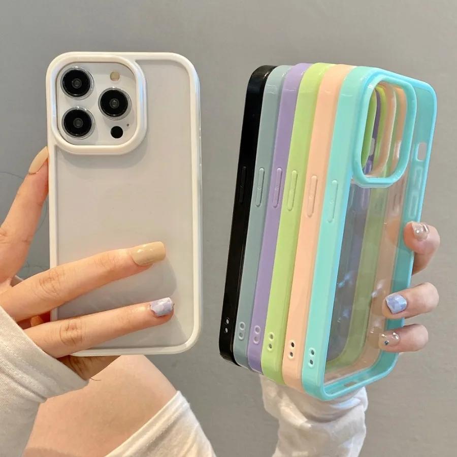 Модный прозрачный чехол-бампер цвета конфет для iPhone 15 14 13 12 11 Pro Max XR XS X Plus, мягкая противоударная задняя крышка из ТПУ — купить товар онлайн с бесплатной доставкой по всему миру!
