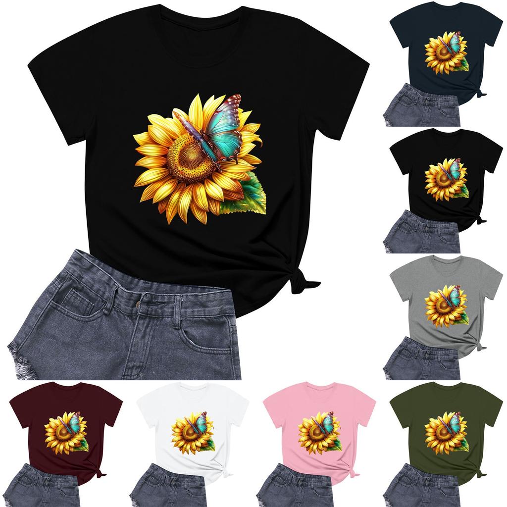 Женская модная повседневная футболка с круглым вырезом и короткими рукавами — купить товар онлайн с бесплатной доставкой до всему миру!