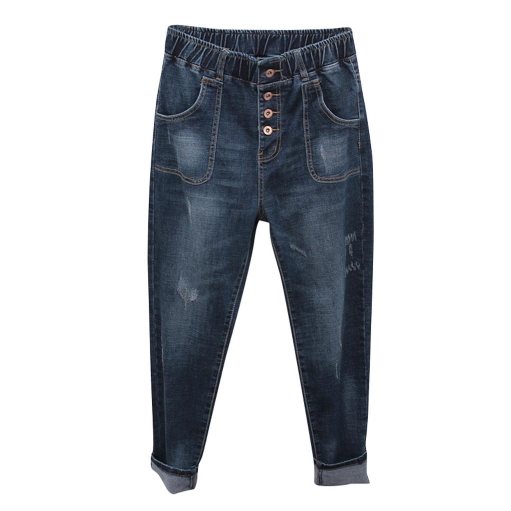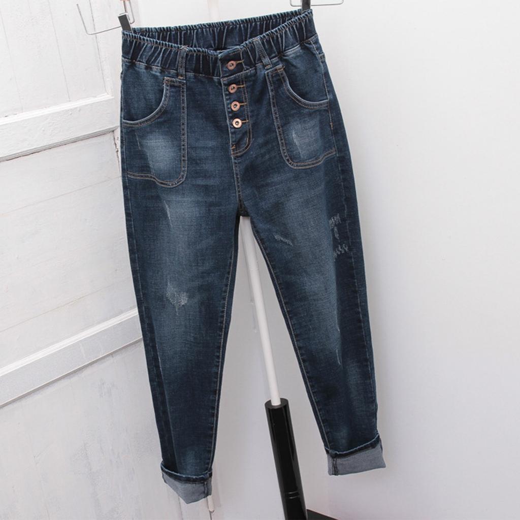 Женские брюки большого размера, эластичные джинсы, свободные полуэластичные брюки