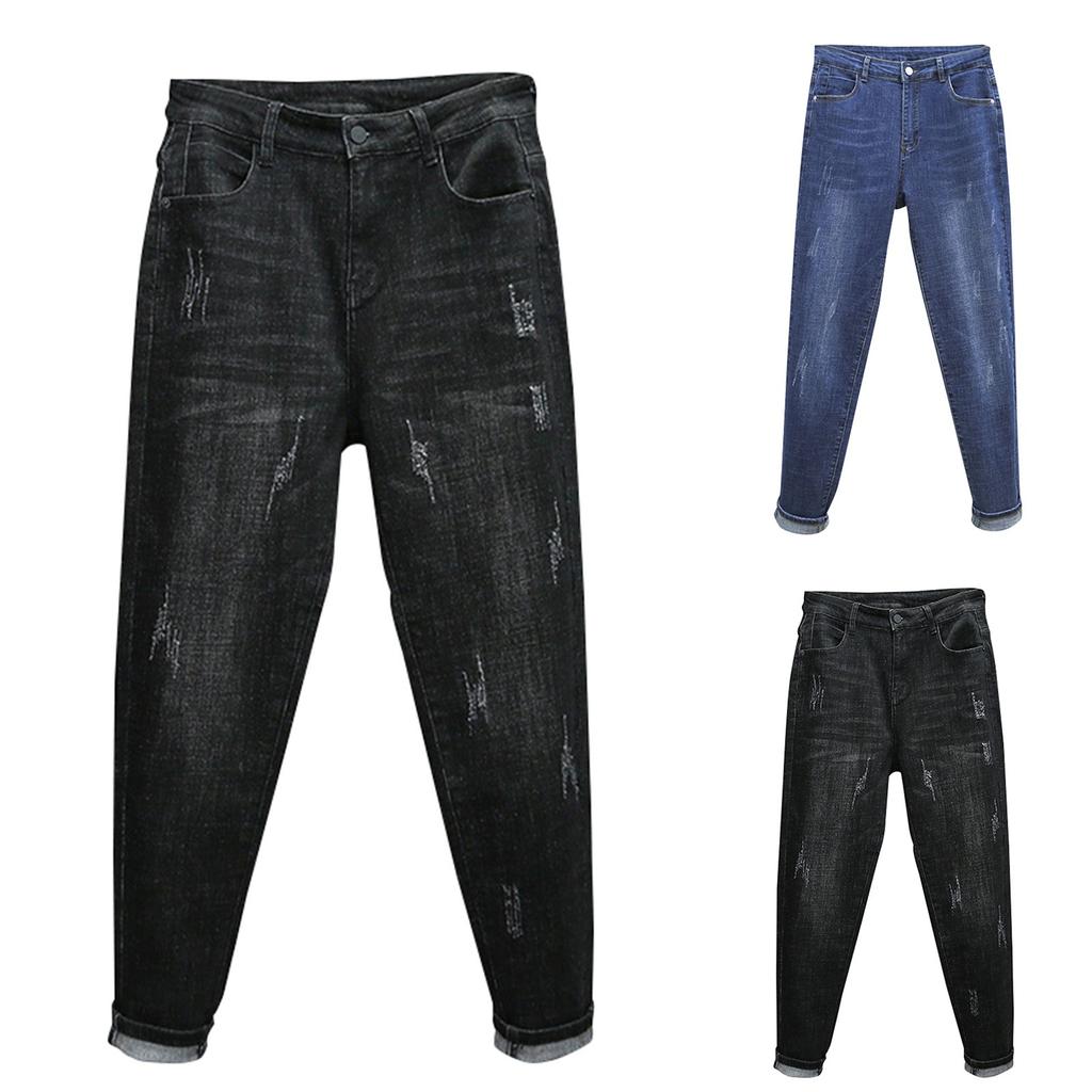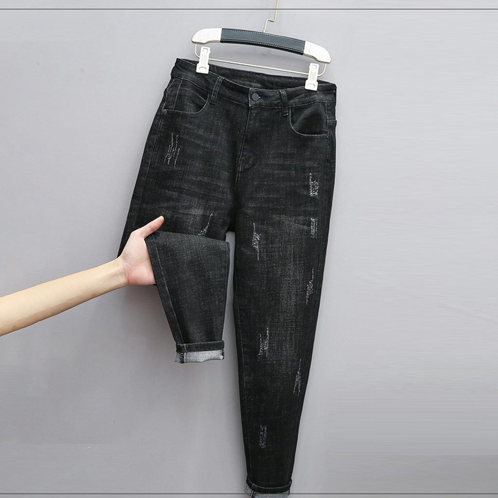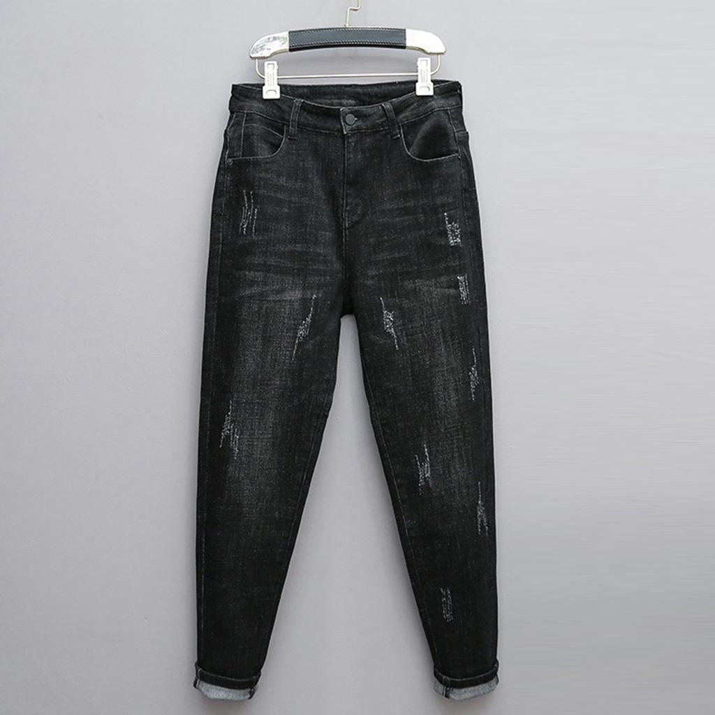 Женские брюки большого размера, эластичные джинсы, свободные полуэластичные брюки