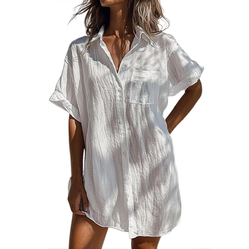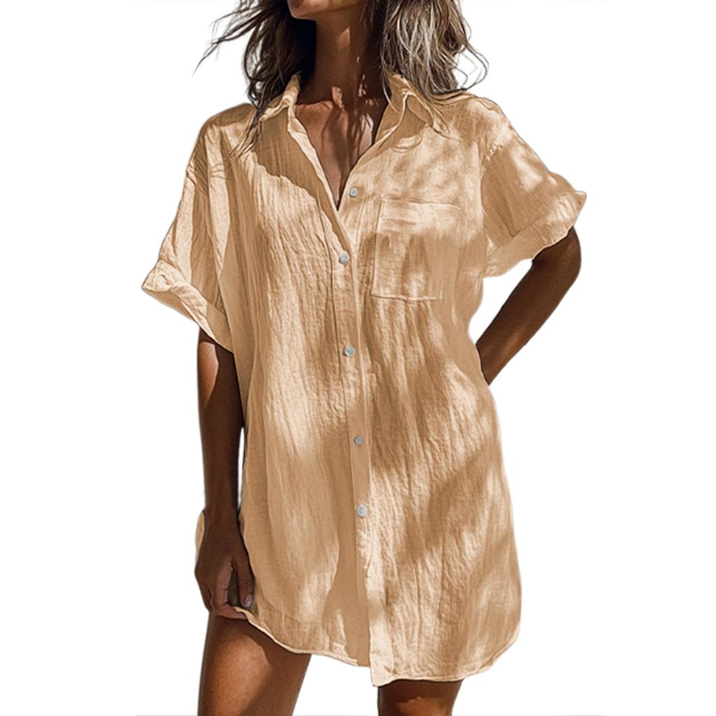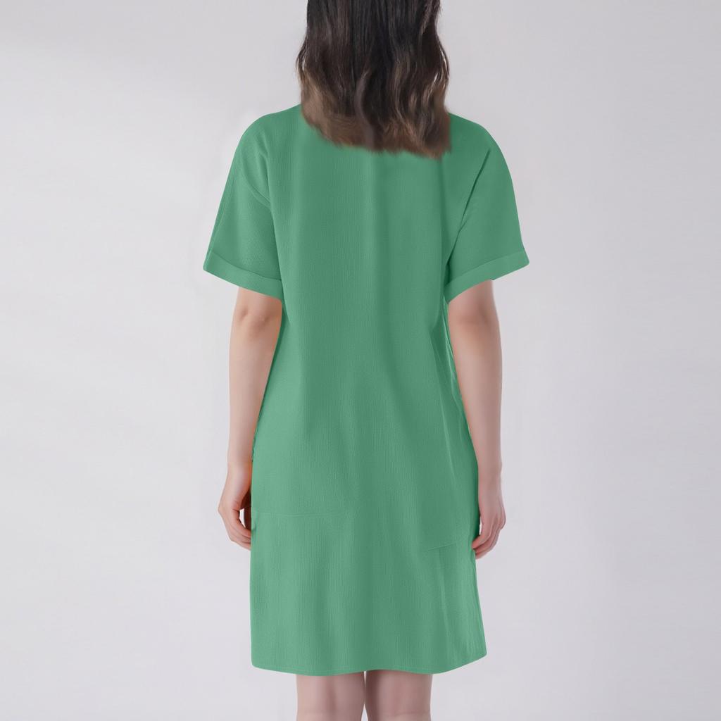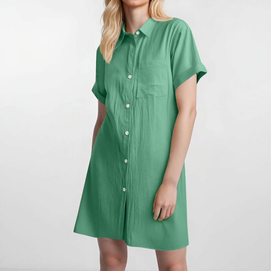 Женское модное повседневное однотонное платье с коротким рукавом и длинными пуговицами