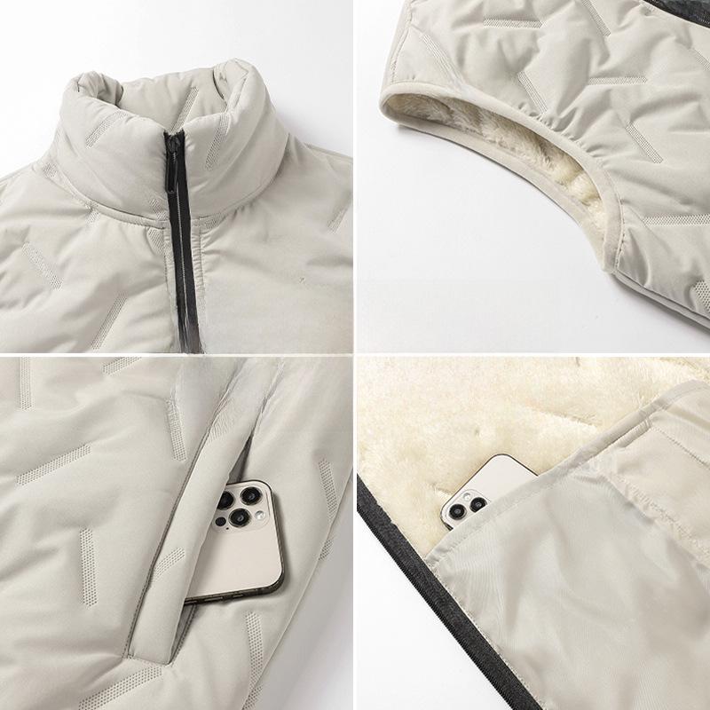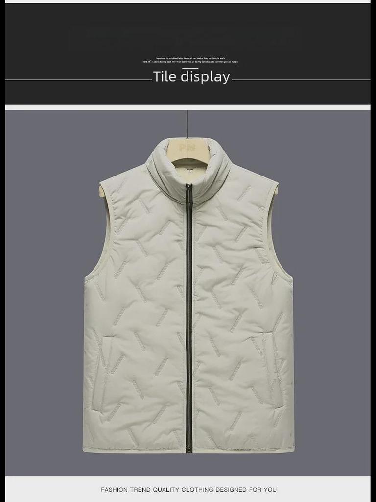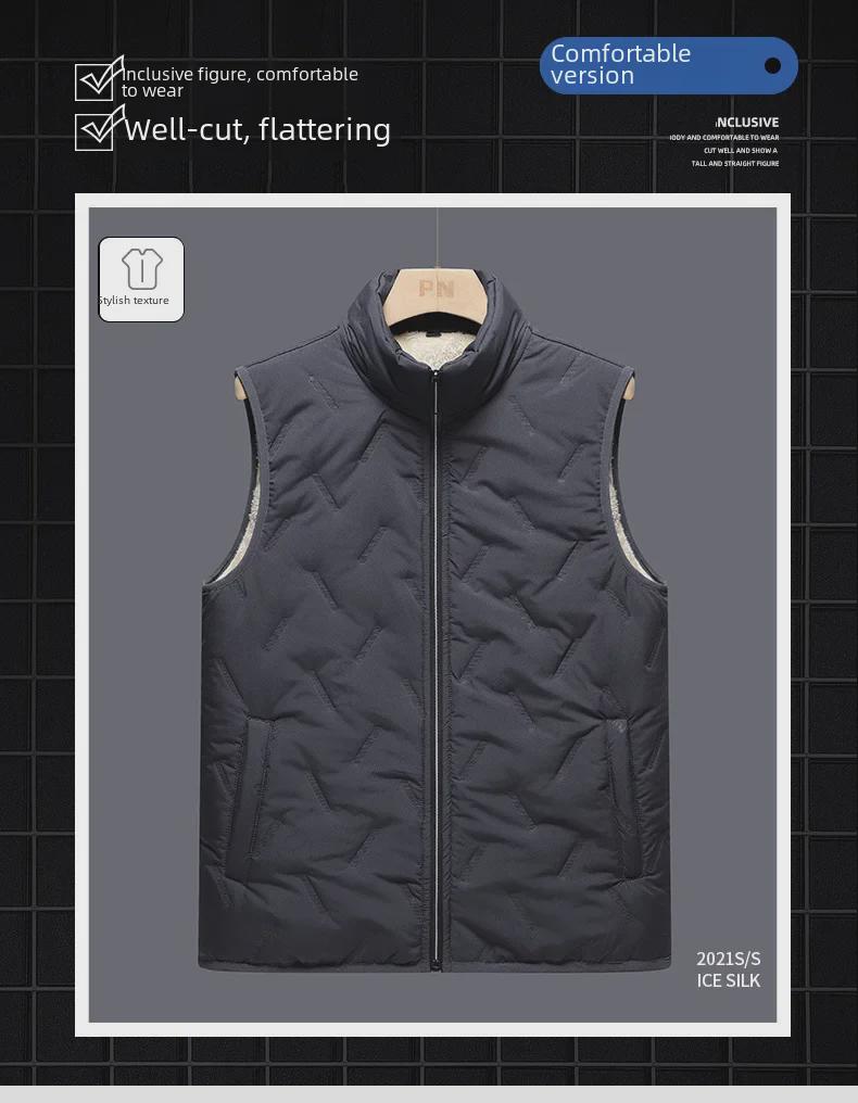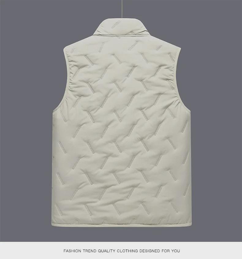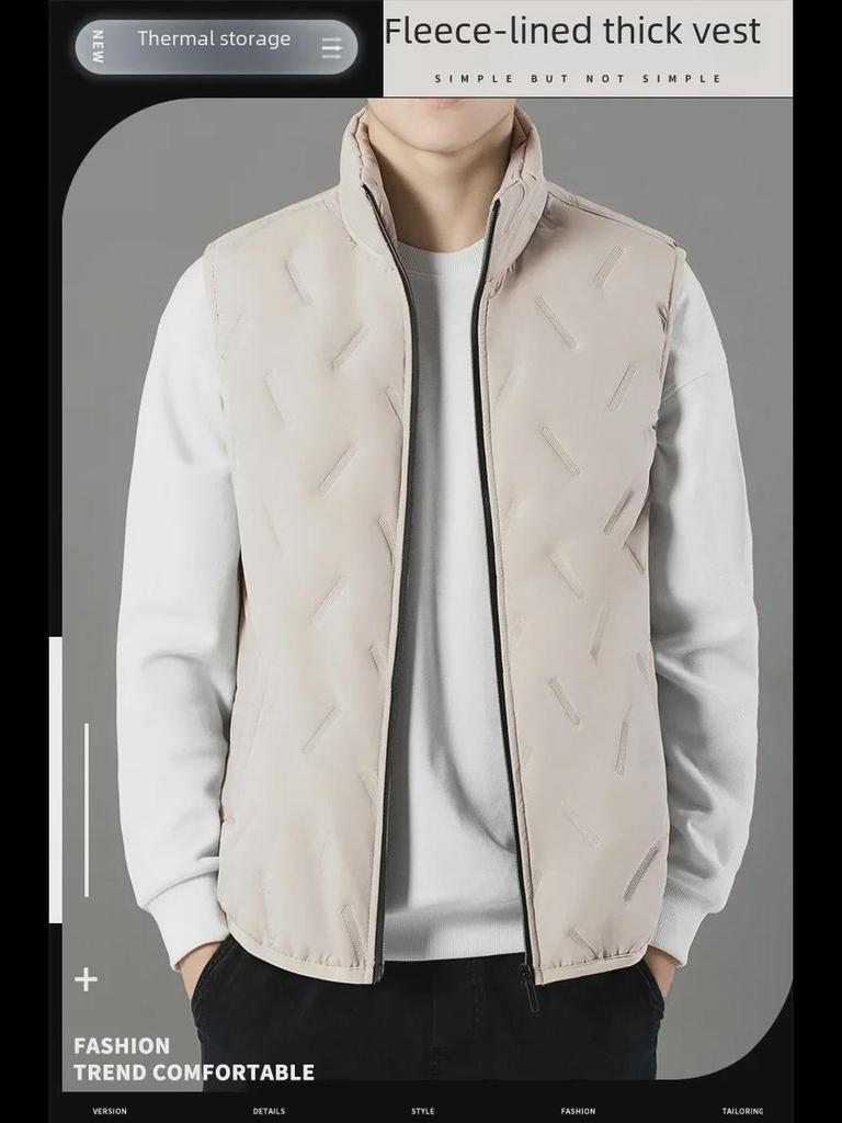Сохраняйте уют и стиль в холодные месяцы с этим мужским жилетом без рукавов, предназначенным для осени и зимы.. Эта верхняя одежда средней толщины обеспечивает стандартную посадку, обеспечивая комфорт и легкость движений.. Жилет изготовлен из высококачественного полиэстера, а внутренняя часть отделана бархатом для дополнительного тепла.. Его однотонный узор добавит классического оттенка любому наряду, что делает его незаменимым дополнением к вашему гардеробу для холодной погоды.. Этот жилет идеально подходит для многослойного ношения, обеспечивая универсальный и практичный стиль для современного мужчины.