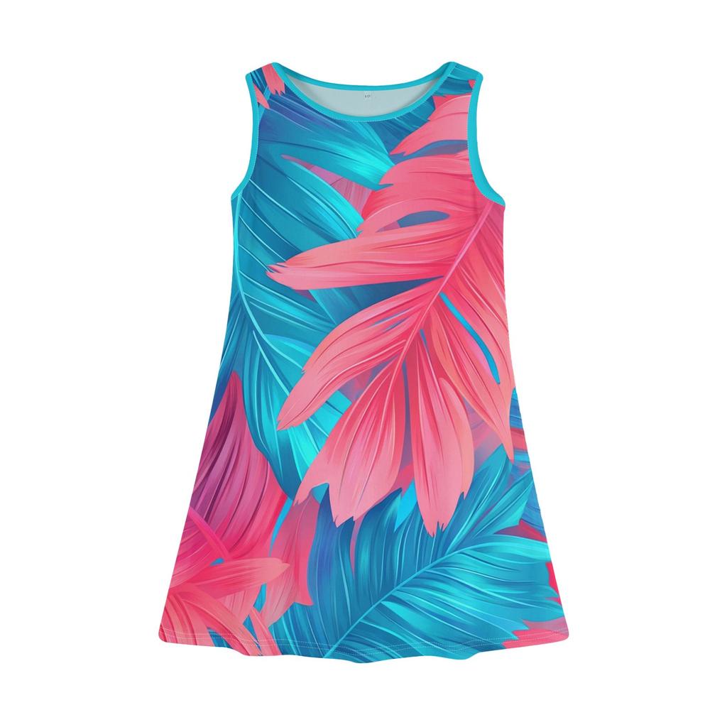 Летнее платье для девочек без рукавов с принтом в цвете, повседневное платье