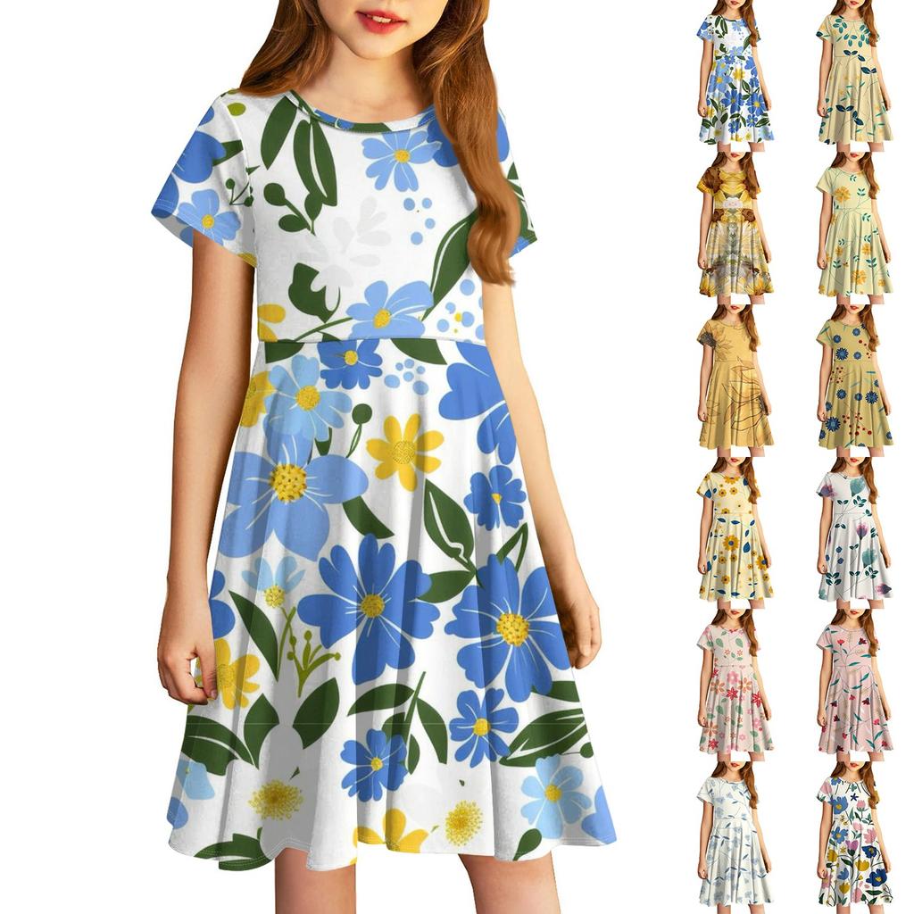 Юбки для девочек, маленькие цветочные платья с милыми принтами, юбки для детей