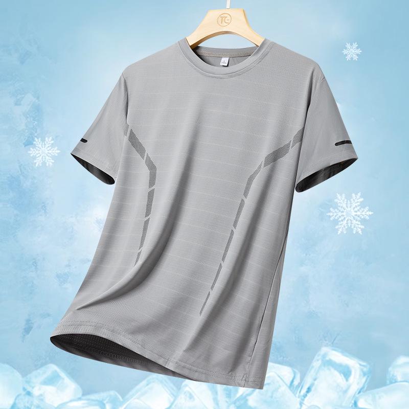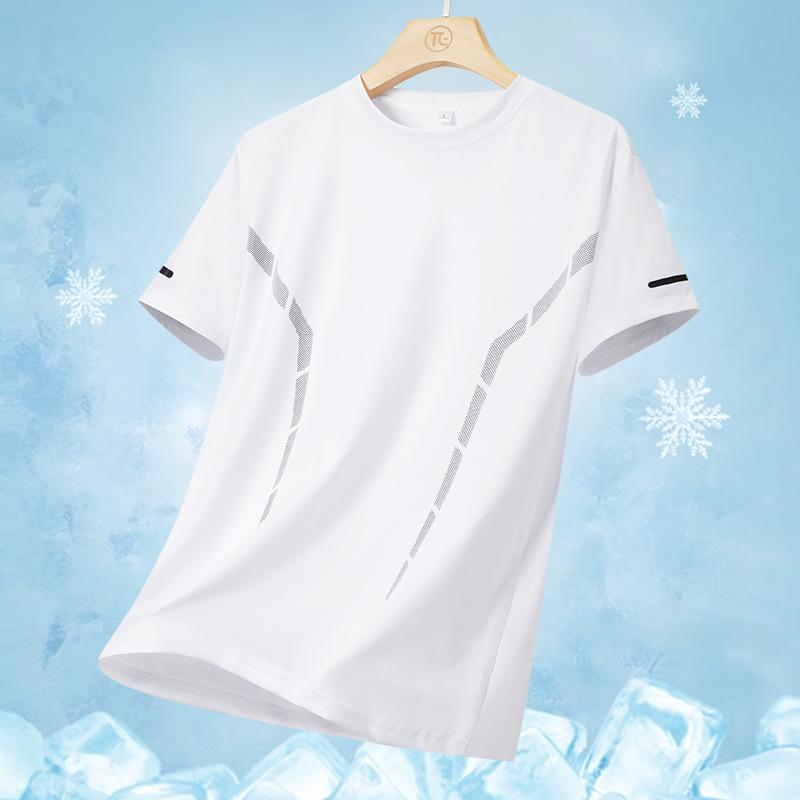 2024 Мужская футболка свободного кроя из быстросохнущего шелка Ice Silk — легкая, с круглым вырезом, коротким рукавом, повседневная