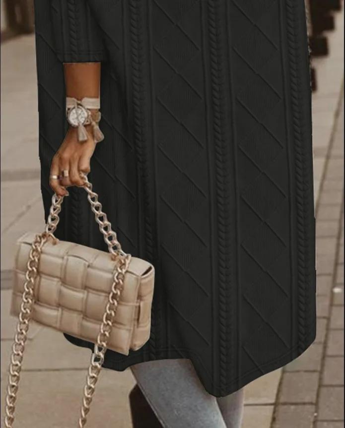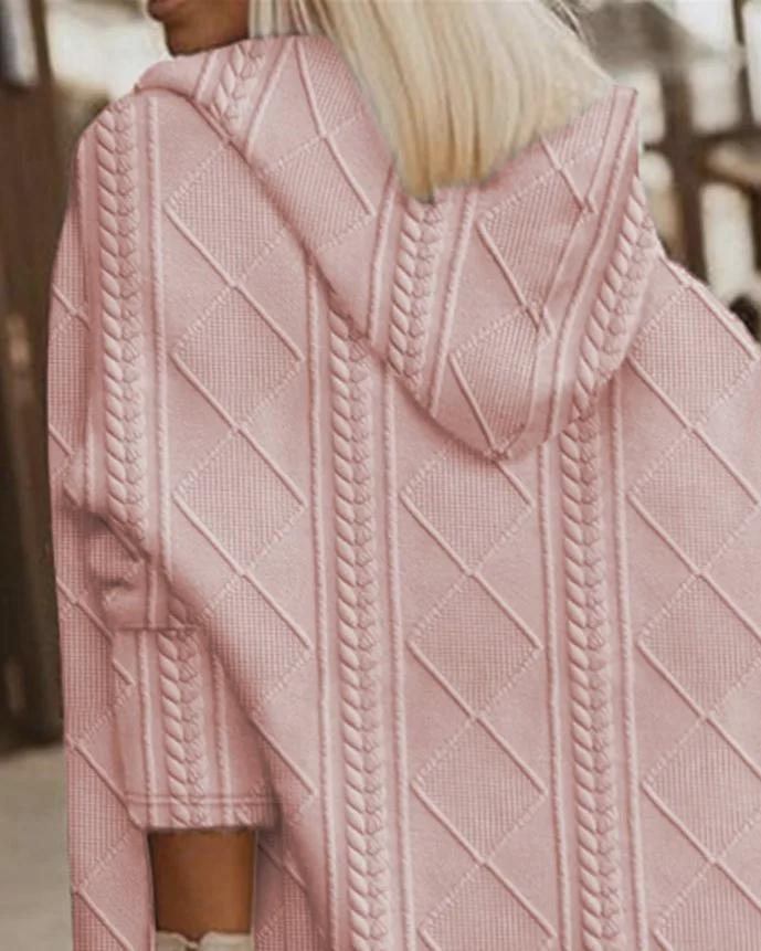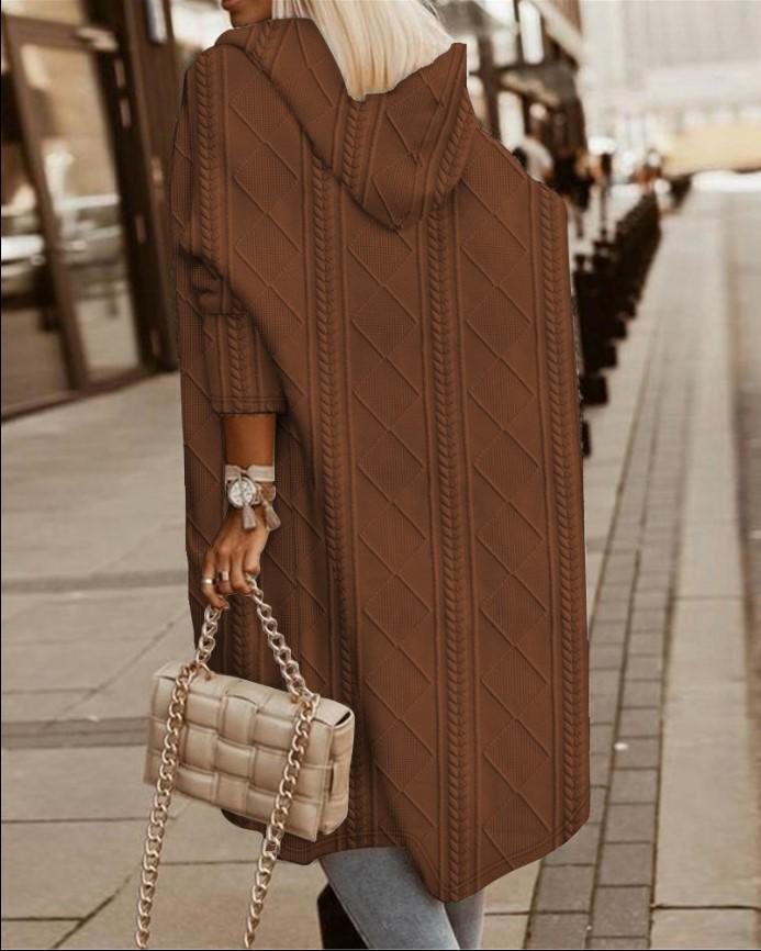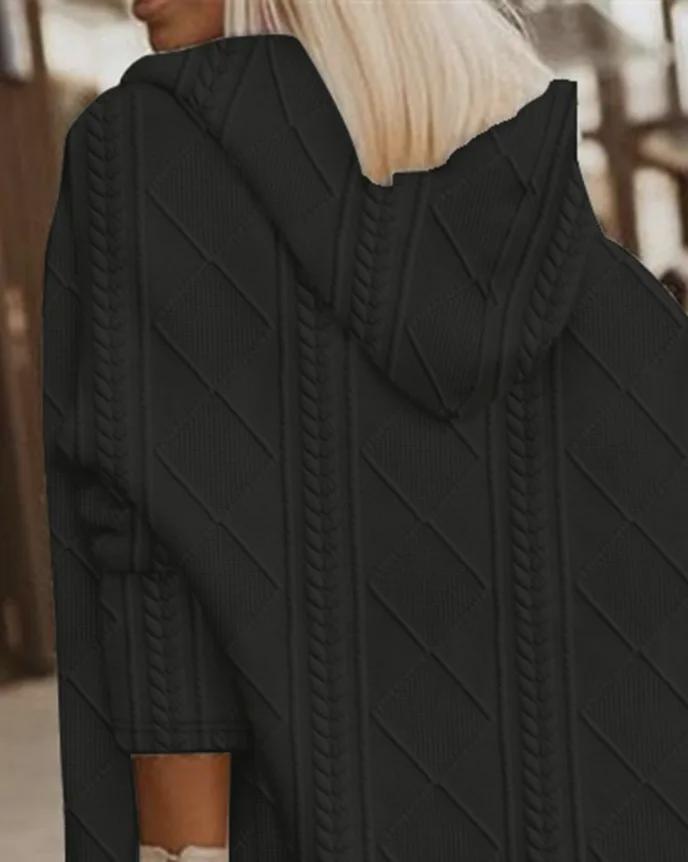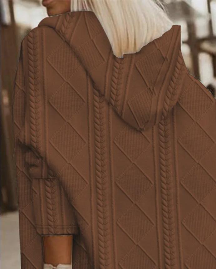 Женская ветровка средней длины с капюшоном из перекрученной фактуры для осени и зимы - европейский и американский стиль