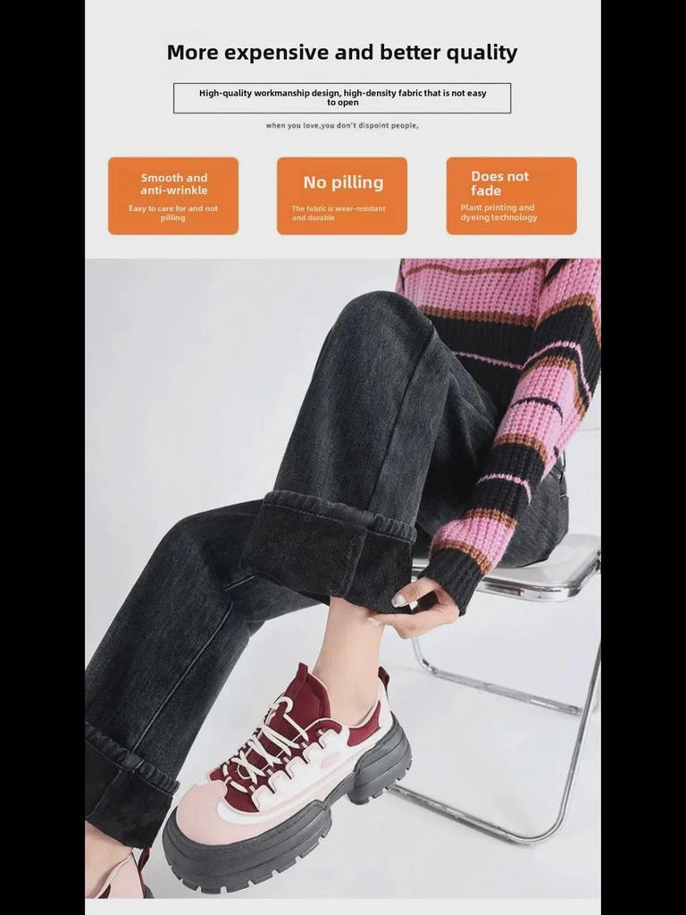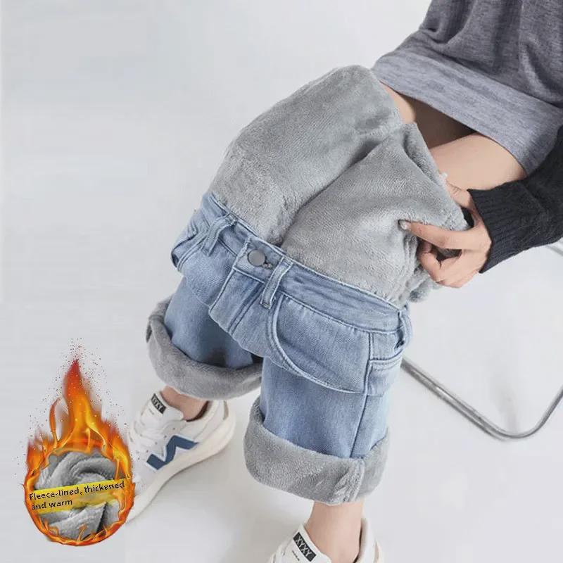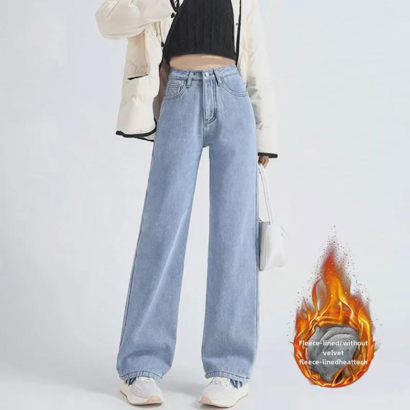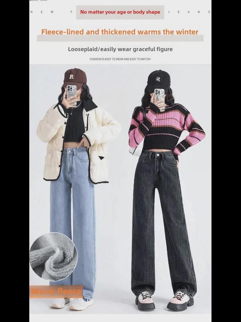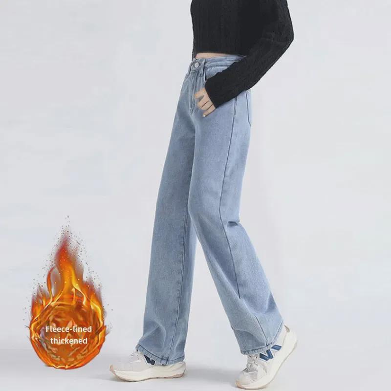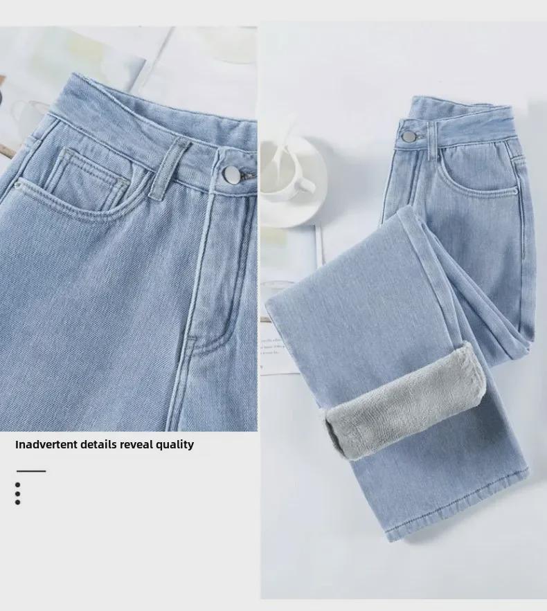 Женские плюшевые джинсы с высокой талией и широкими штанинами — удобная одежда на осень/зиму