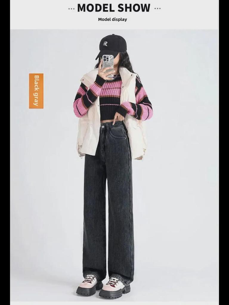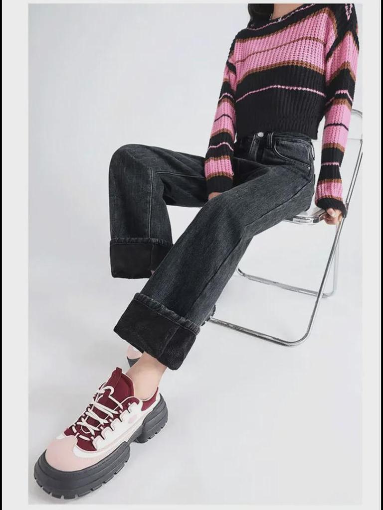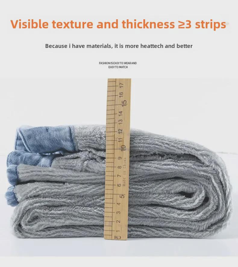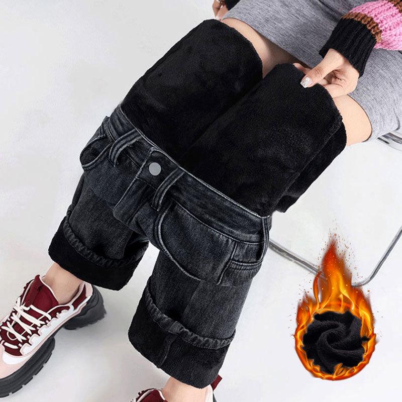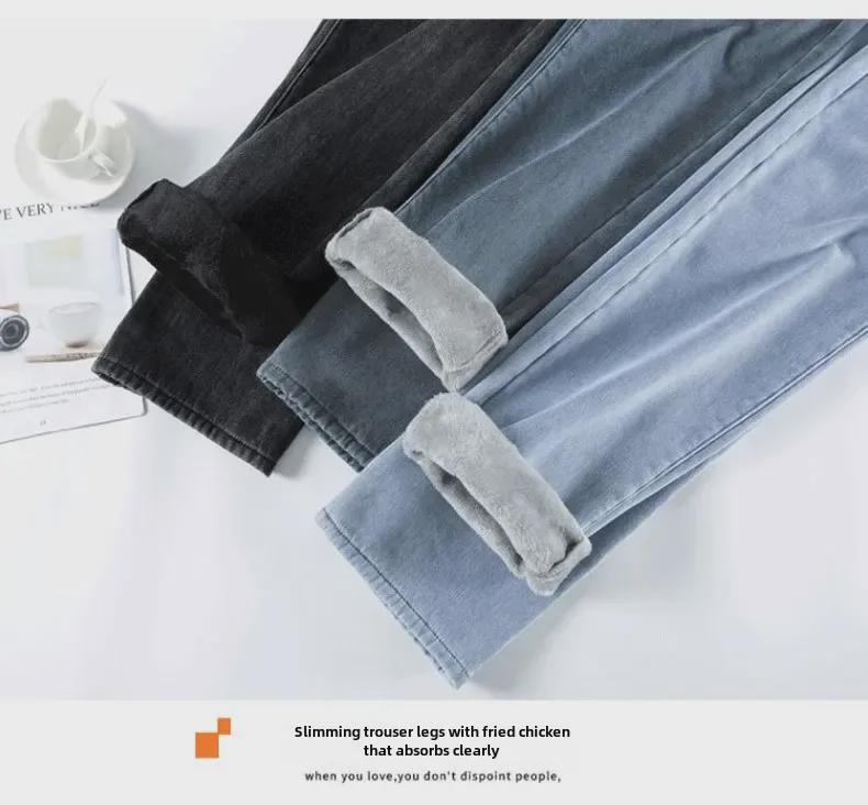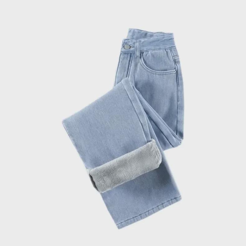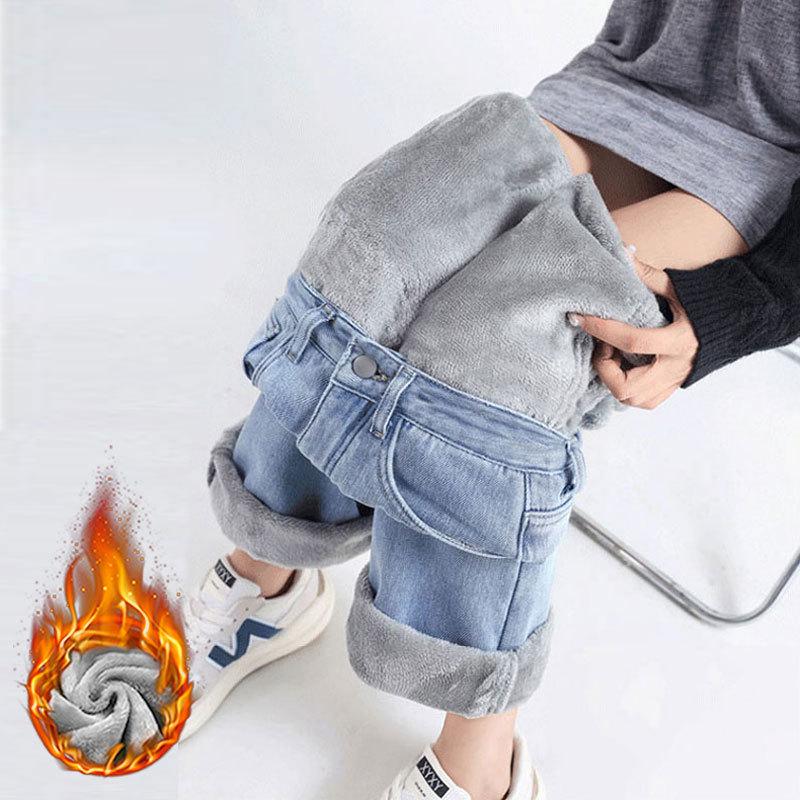 Женские плюшевые джинсы с высокой талией и широкими штанинами — удобная одежда на осень/зиму