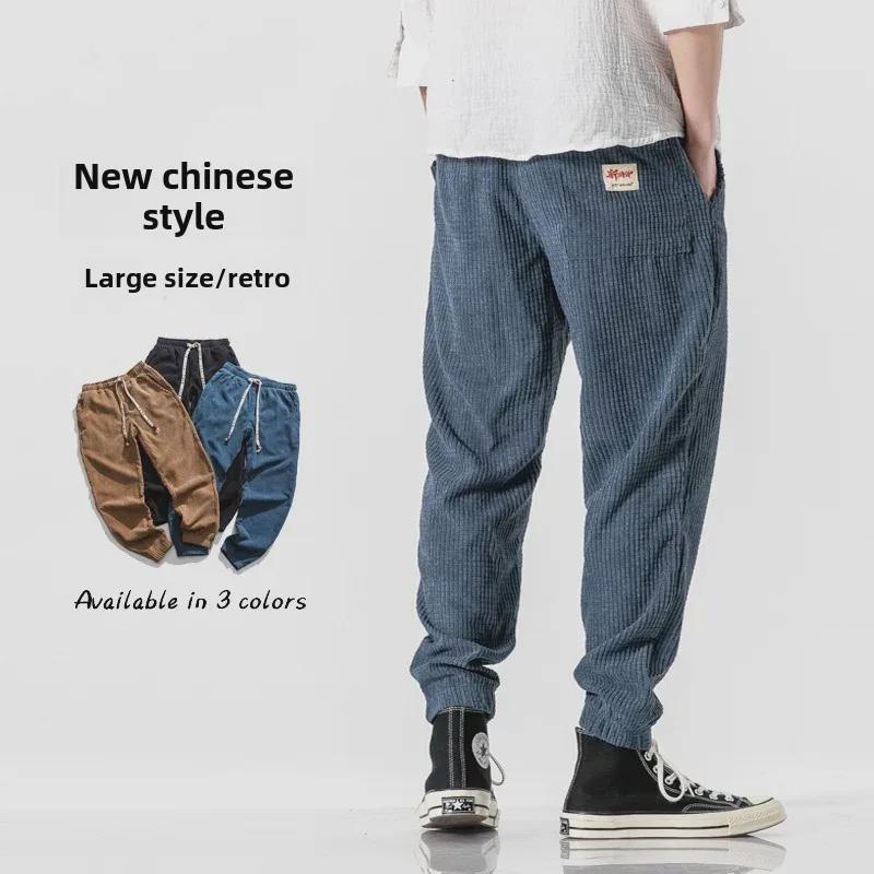 Мужские леггинсы свободного кроя в стиле ретро с эффектом потертости однотонного цвета для осени и зимы — купить товар онлайн с бесплатной доставкой по всему миру!