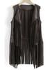 Женский летний жилет из оленьей кожи с кисточками: Однотонный, без рукавов, повседневный кардиган-топ