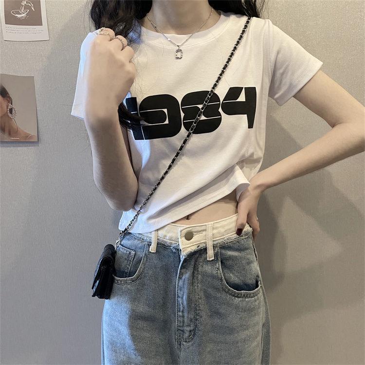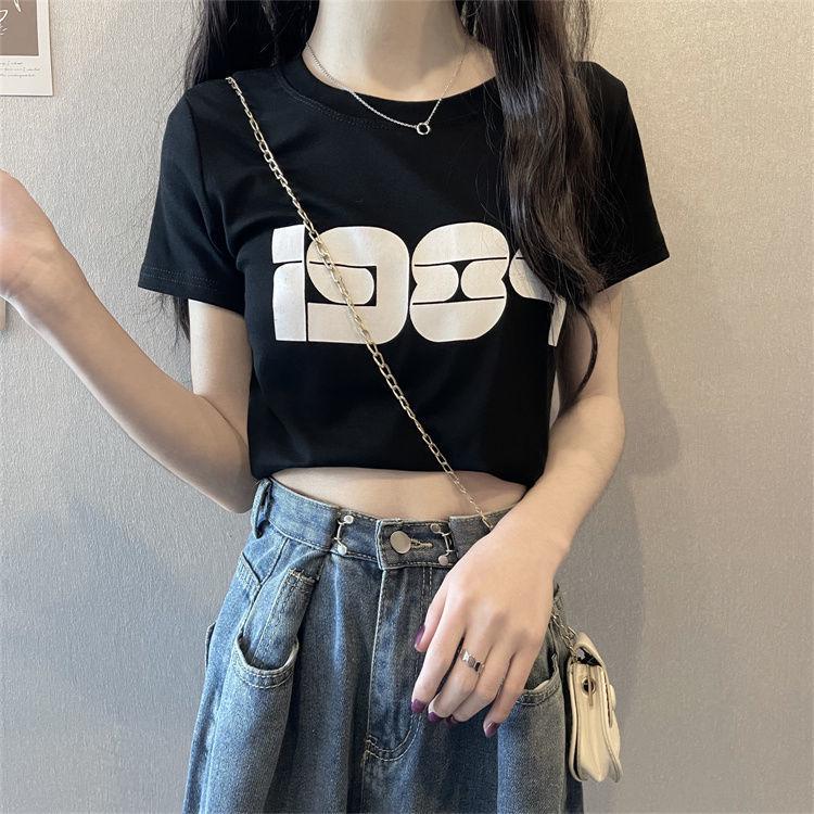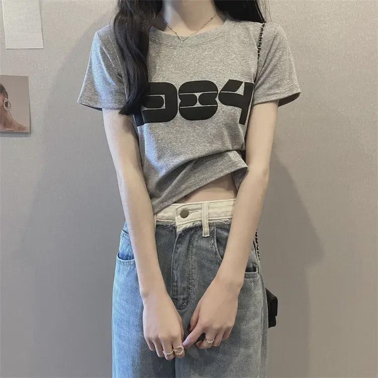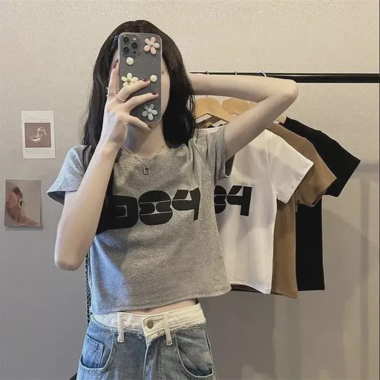 2025 Корейская свободная футболка с коротким рукавом и открытым пупком для женщин - Универсальный и модный дизайн