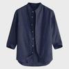 Мужской льняной кардиган в корейском стиле с воротником-стойкой — повседневная, дышащая, свободная молодежная рубашка с рукавами три четверти.