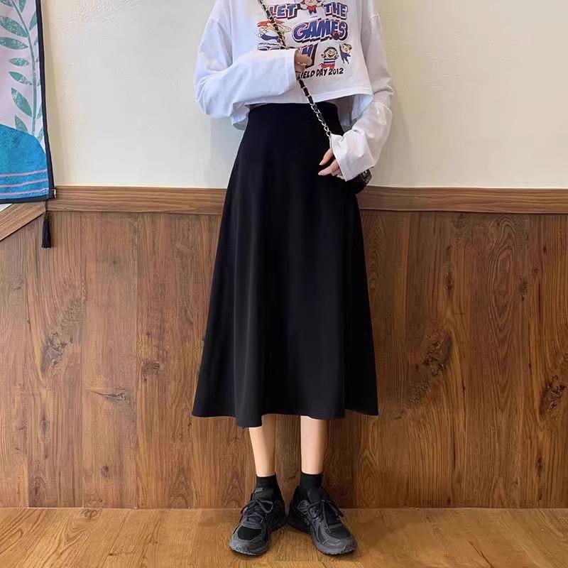 Юбка-трапеция с высокой талией для женщин - весна 2024 г., средней длины, черная, модная юбка-зонтик в корейском стиле