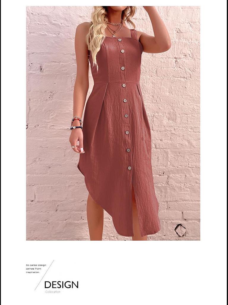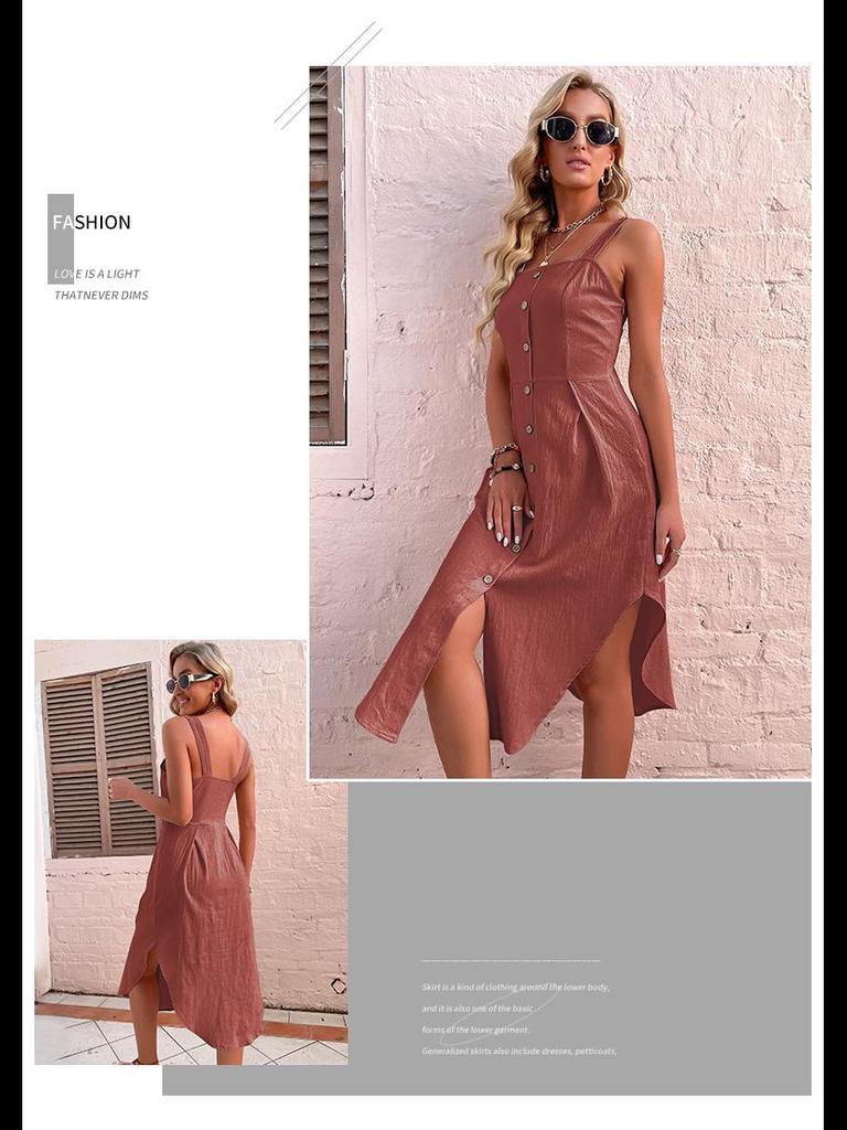 Летнее однотонное облегающее платье на подтяжках - нестандартная юбка из хлопка и льна для европейского и американского стилей