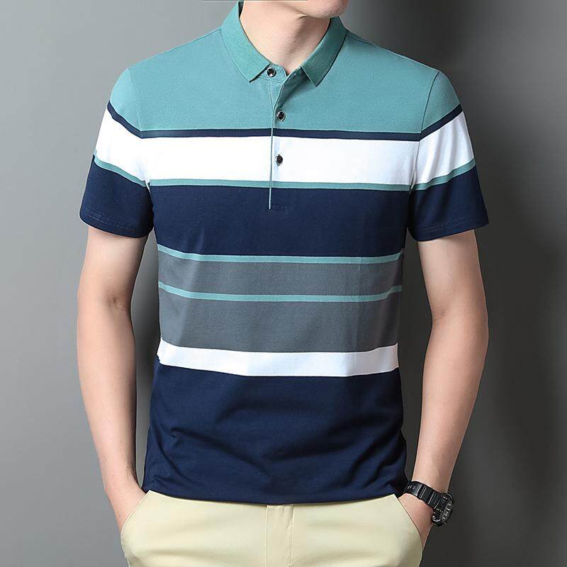 Мужская футболка-поло с короткими рукавами и горизонтальной полоской, молодежный деловой стиль, темперамент, лацкан, конференц-топ, универсальная — купить товар онлайн с бесплатной доставкой до всему миру!