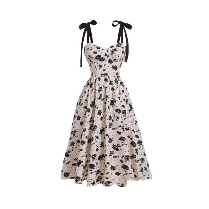 Женские популярные французские платья в стиле Хепберн с винтажным галстуком и цветочным принтом