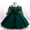 Платье принцессы с длинными рукавами и цветочным принтом для девочки на первый день рождения