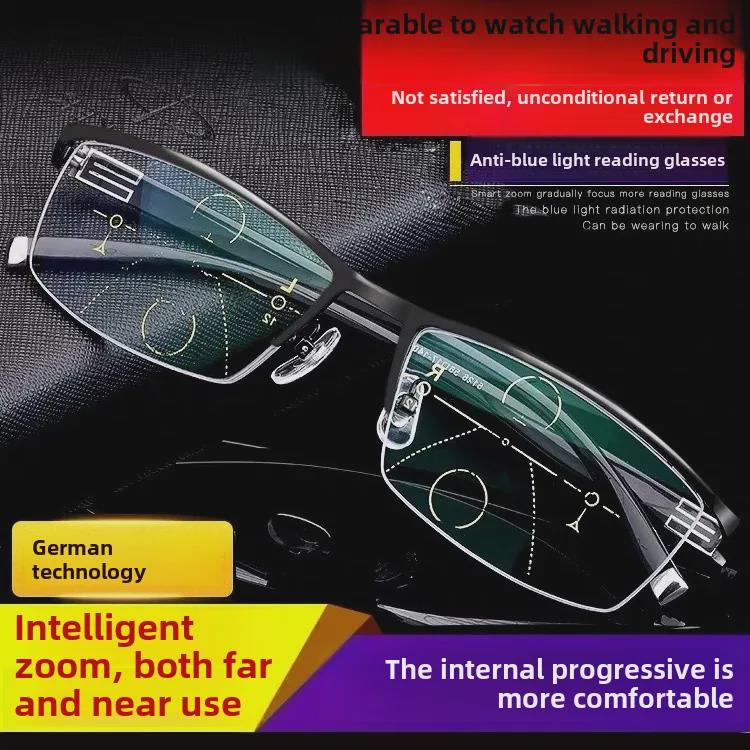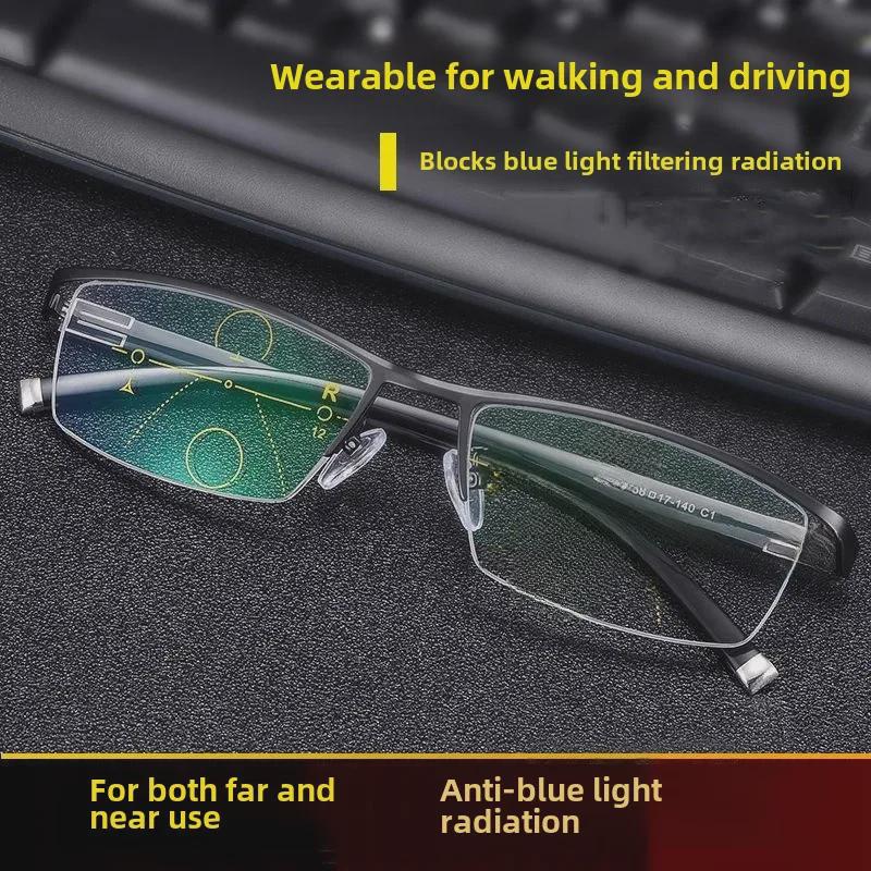 Мужские очки для чтения HD Progressive Multifocus с защитой от синего света для ближнего и дальнего зрения.